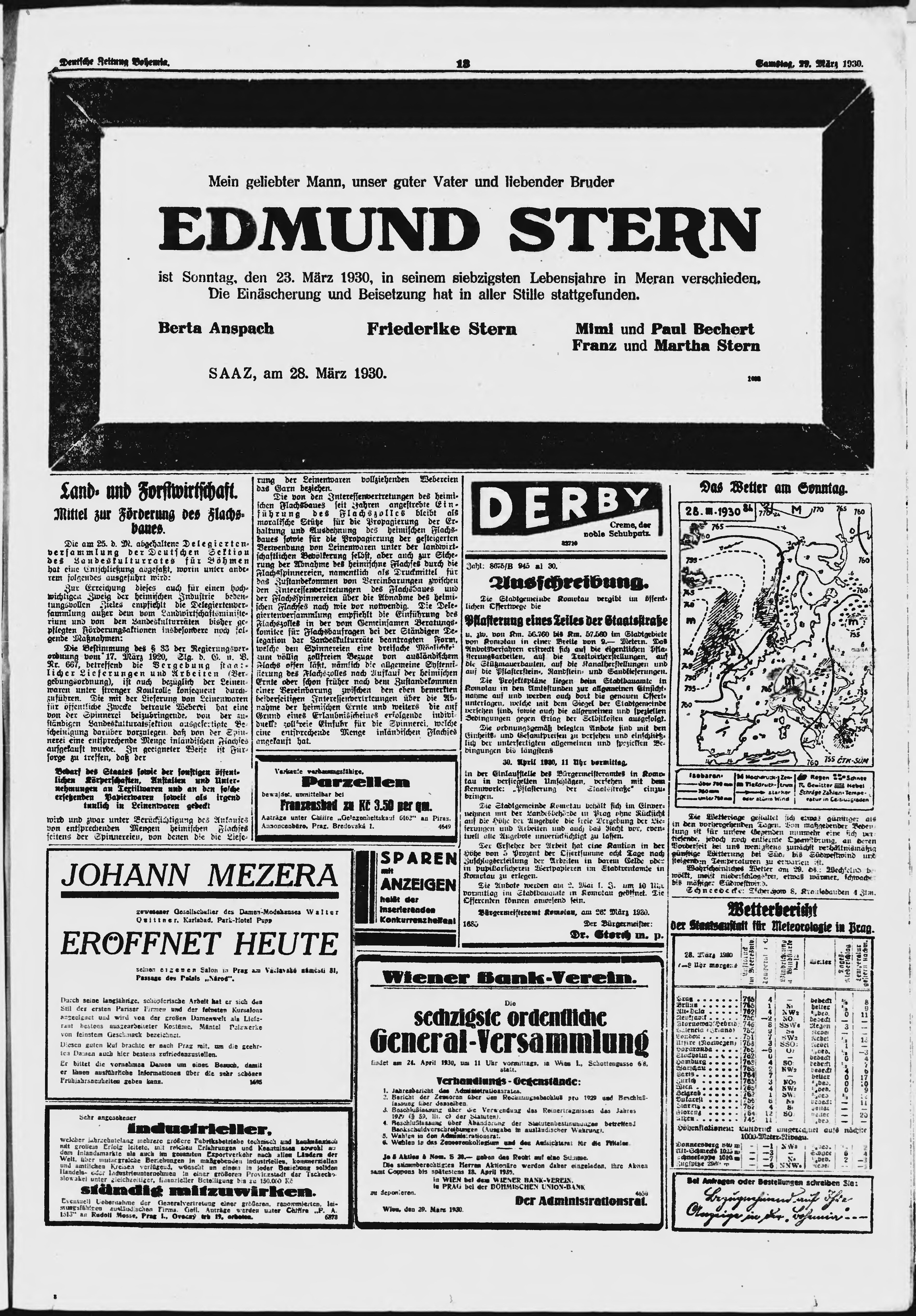 * Datum vydání výtisku: 29.3.1930 Číslo výtisku: 76 Poznámky k výtisku: ranní vydání;
