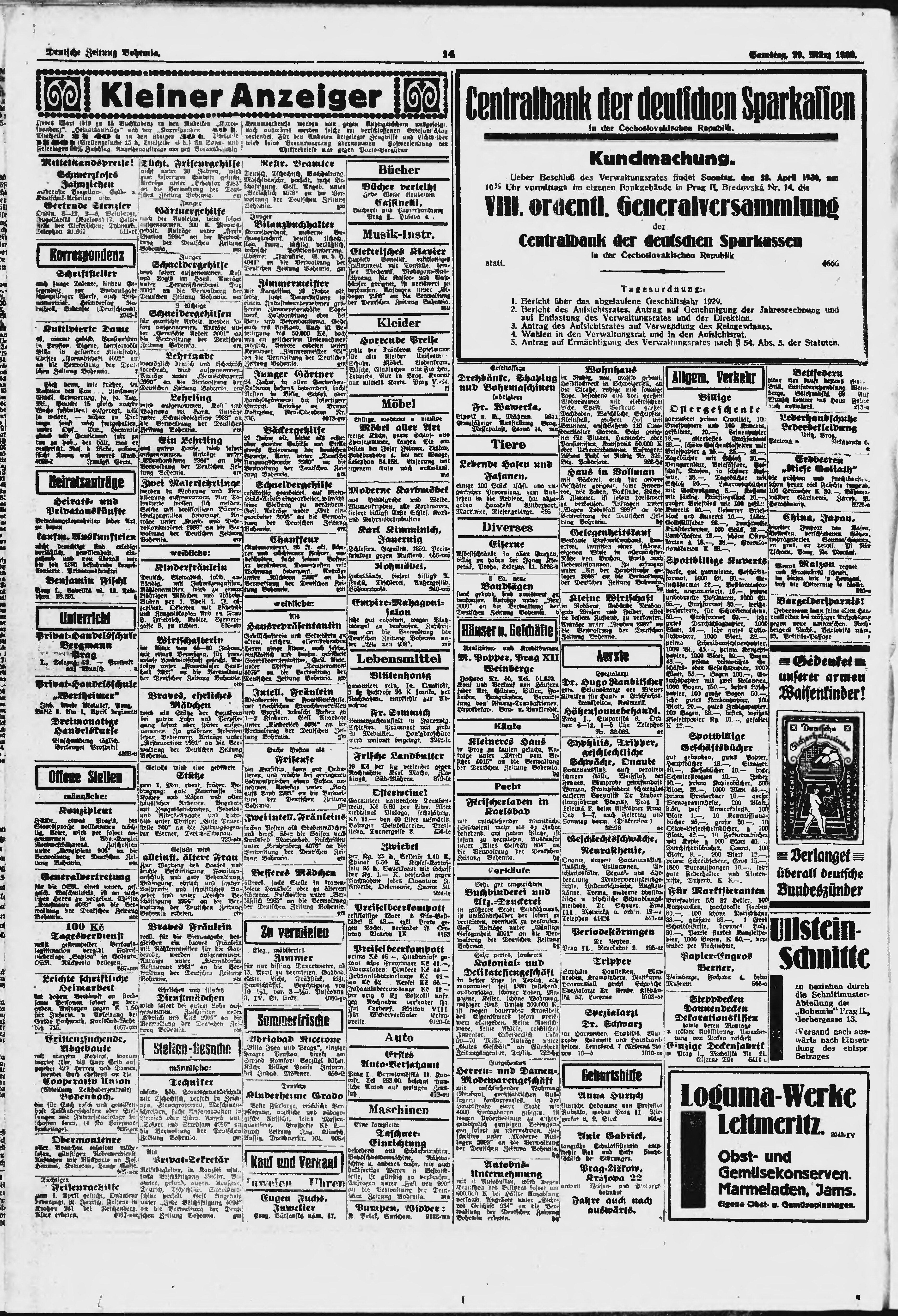 * Datum vydání výtisku: 29.3.1930 Číslo výtisku: 76 Poznámky k výtisku: ranní vydání;