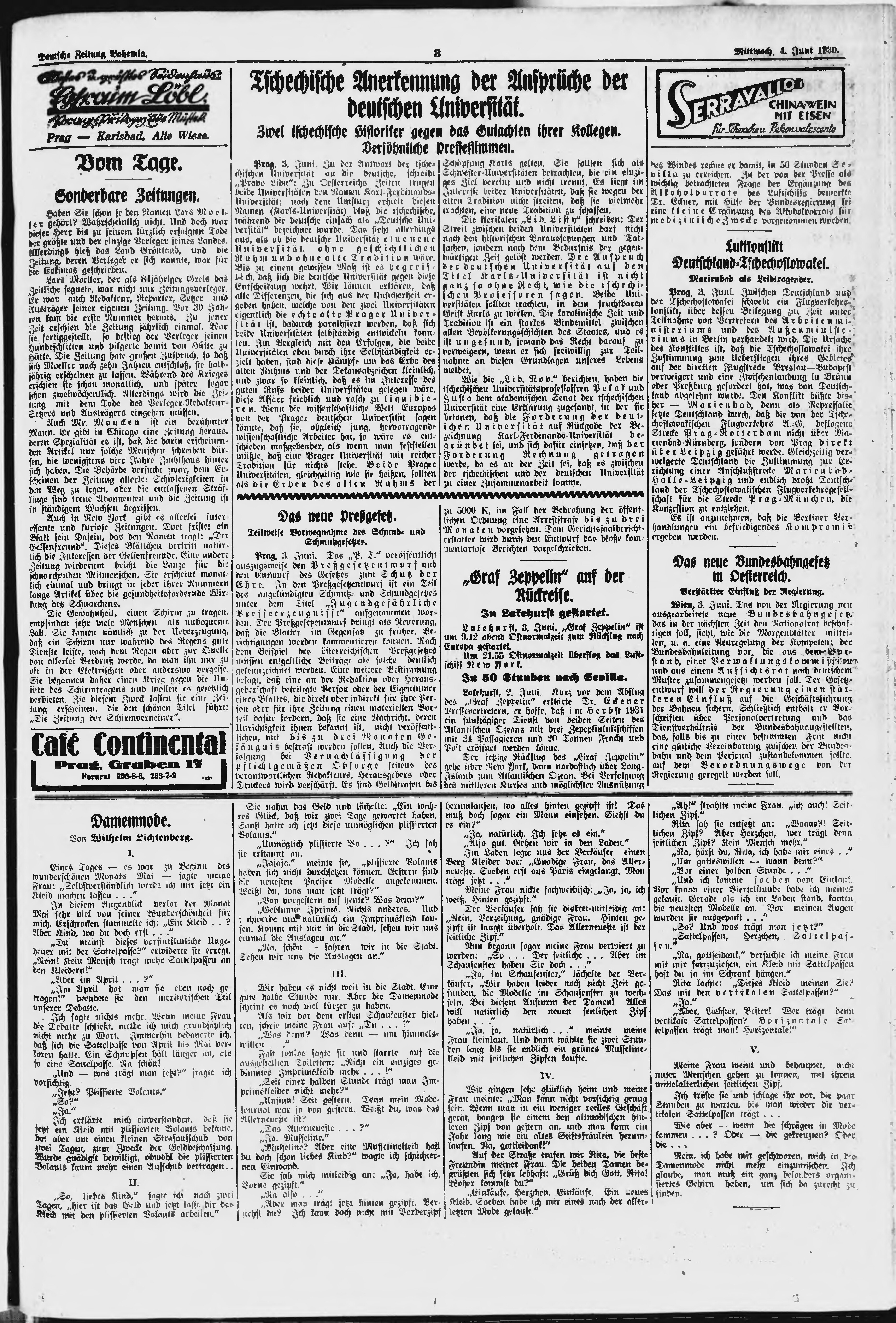 * Datum vydání výtisku: 4.6.1930 Číslo výtisku: 131 Poznámky k výtisku: ranní vydání;