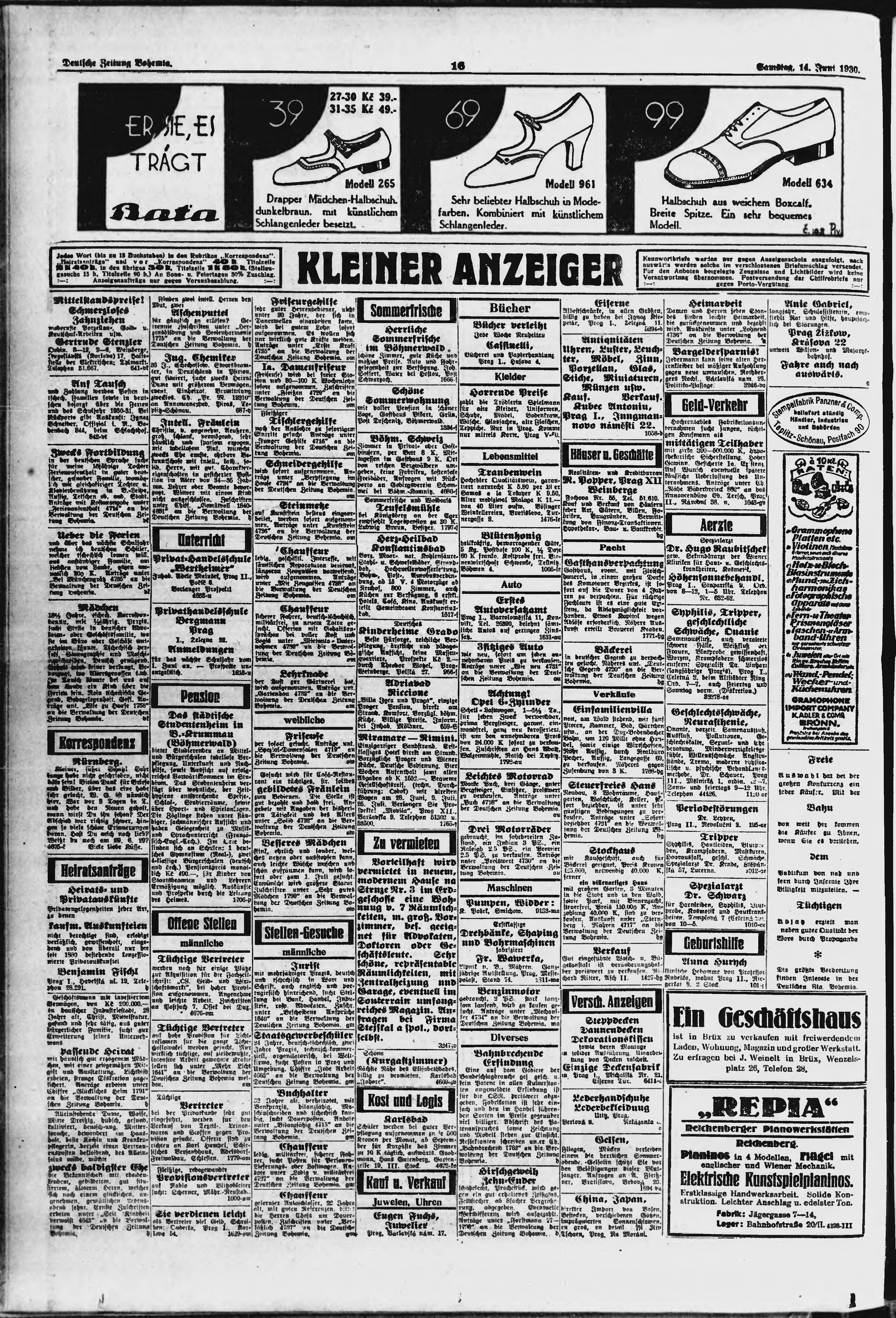 * Datum vydání výtisku: 14.6.1930 Číslo výtisku: 139 Poznámky k výtisku: ranní vydání;