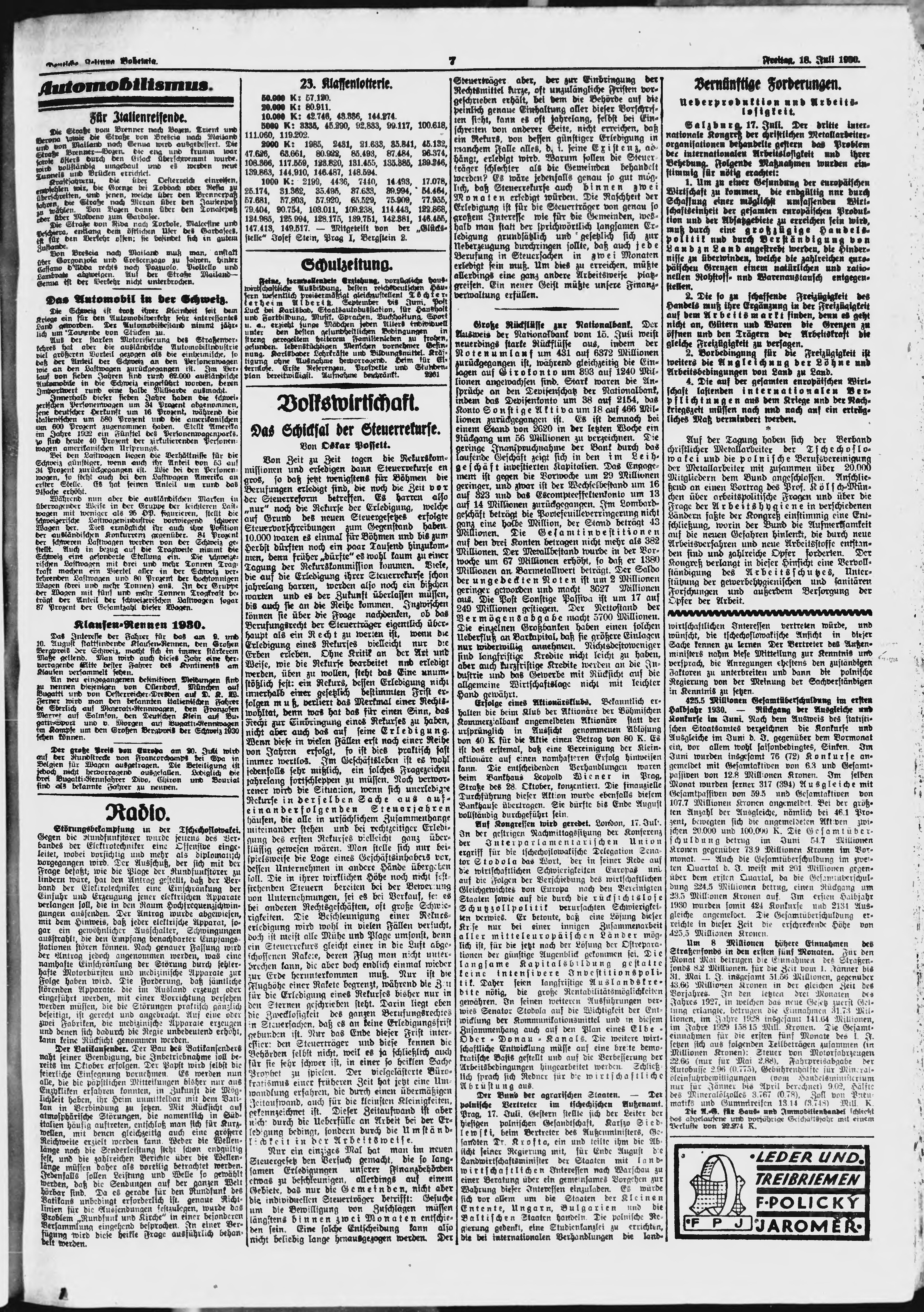 * Datum vydání výtisku: 18.7.1930 Číslo výtisku: 167 Poznámky k výtisku: ranní vydání;
