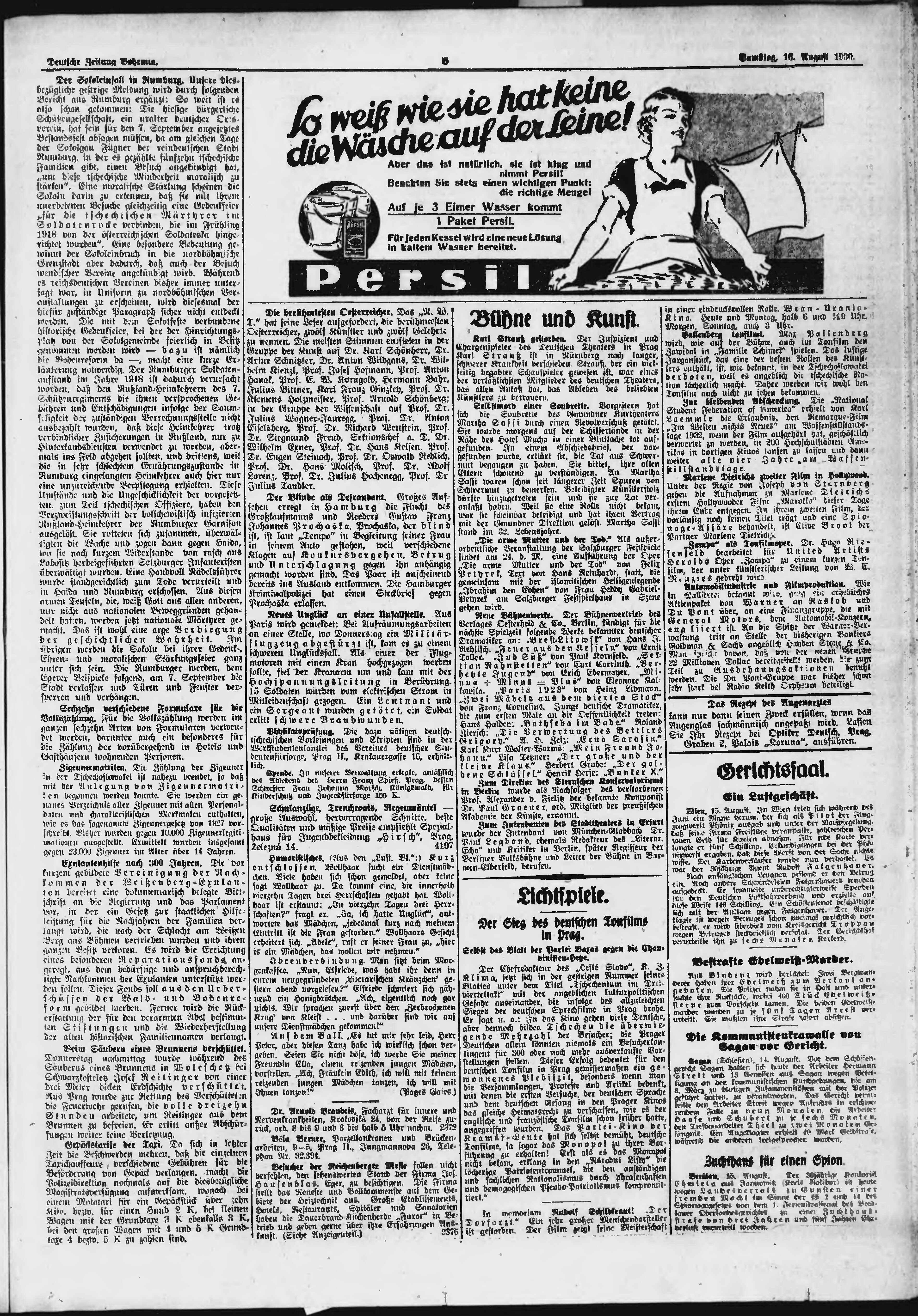 * Datum vydání výtisku: 16.8.1930 Číslo výtisku: 192 Poznámky k výtisku: ranní vydání;