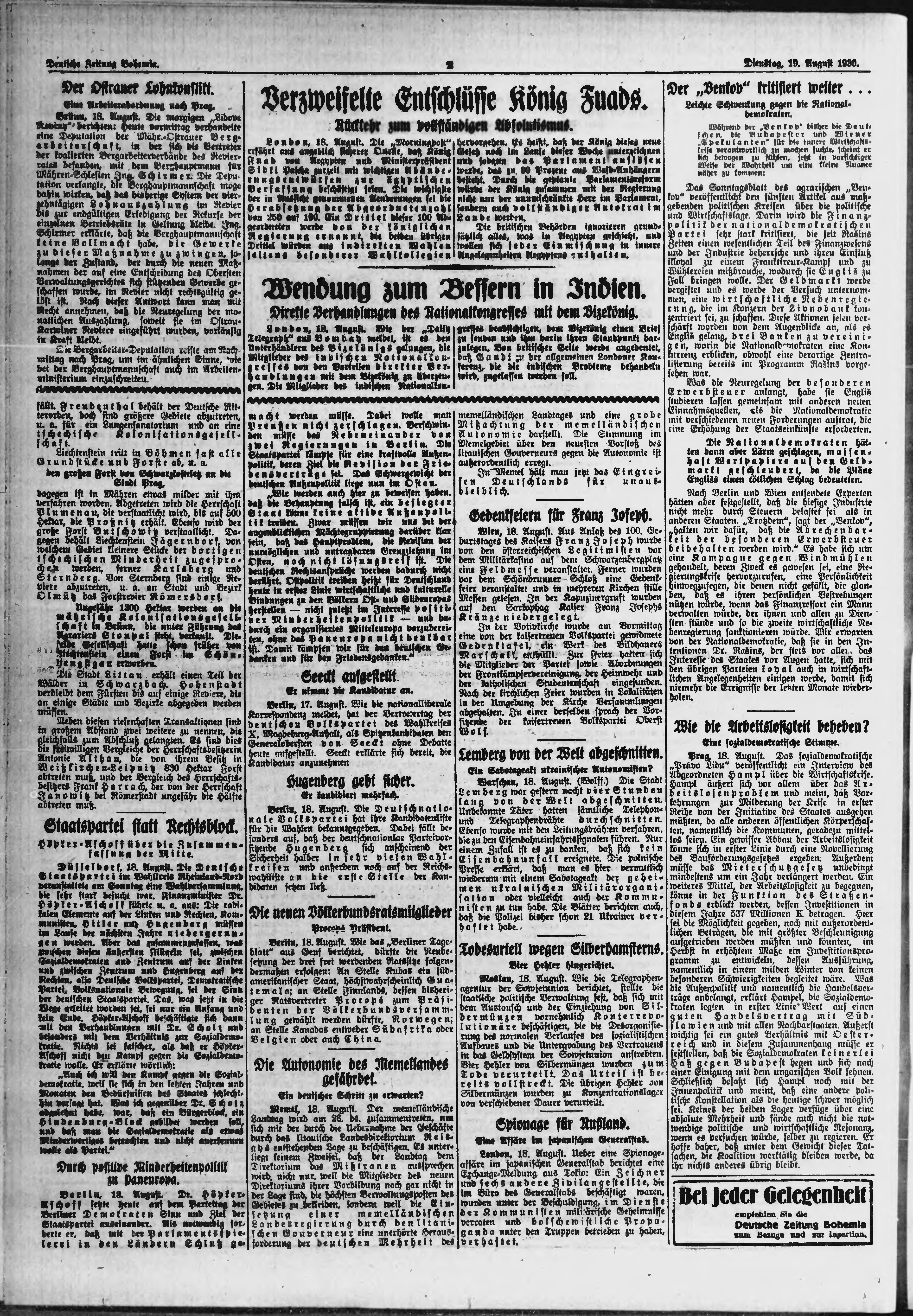* Datum vydání výtisku: 19.8.1930 Číslo výtisku: 194 Poznámky k výtisku: ranní vydání;