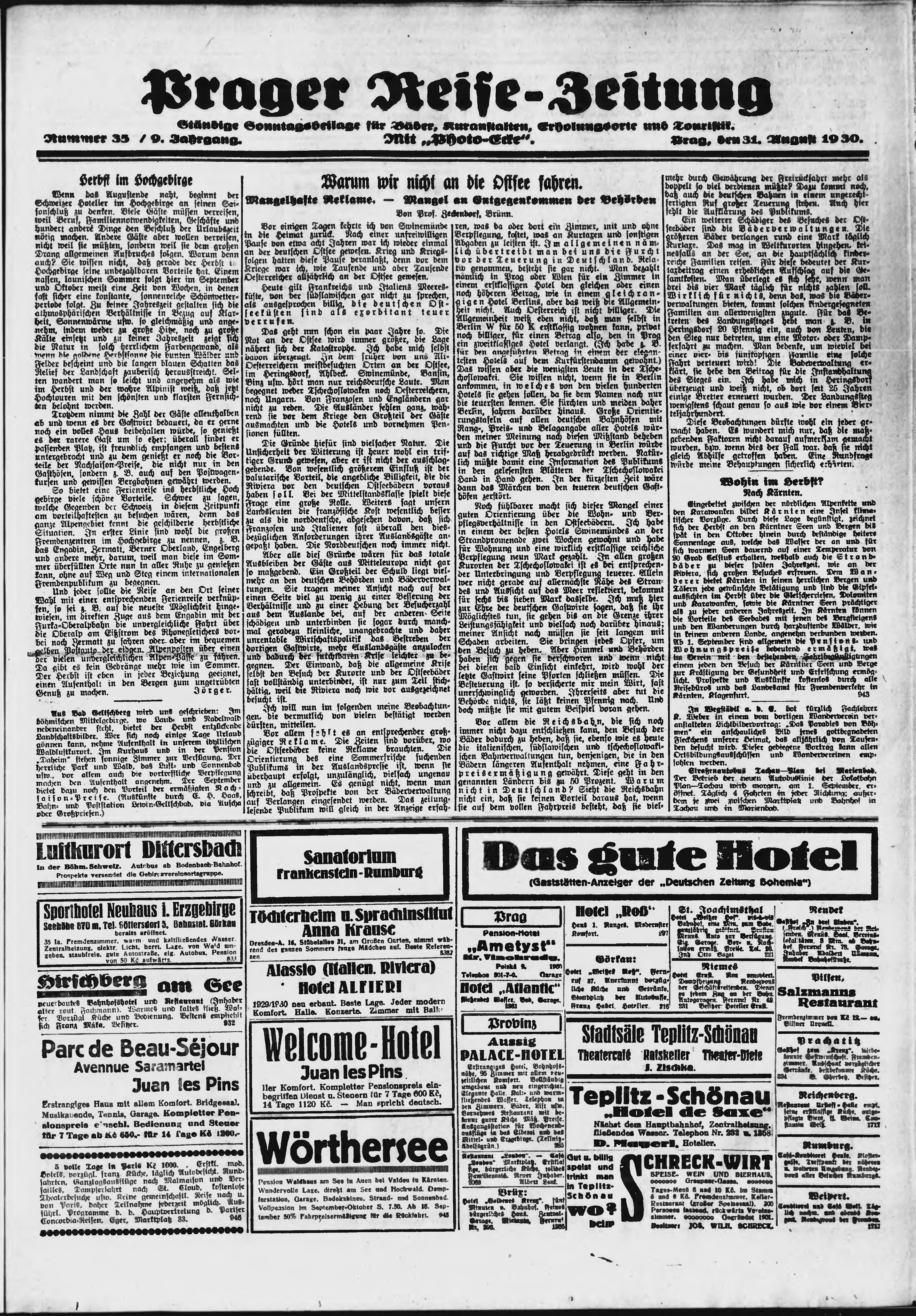 * Datum vydání výtisku: 31.8.1930 Číslo výtisku: 205 Poznámky k výtisku: ranní vydání;