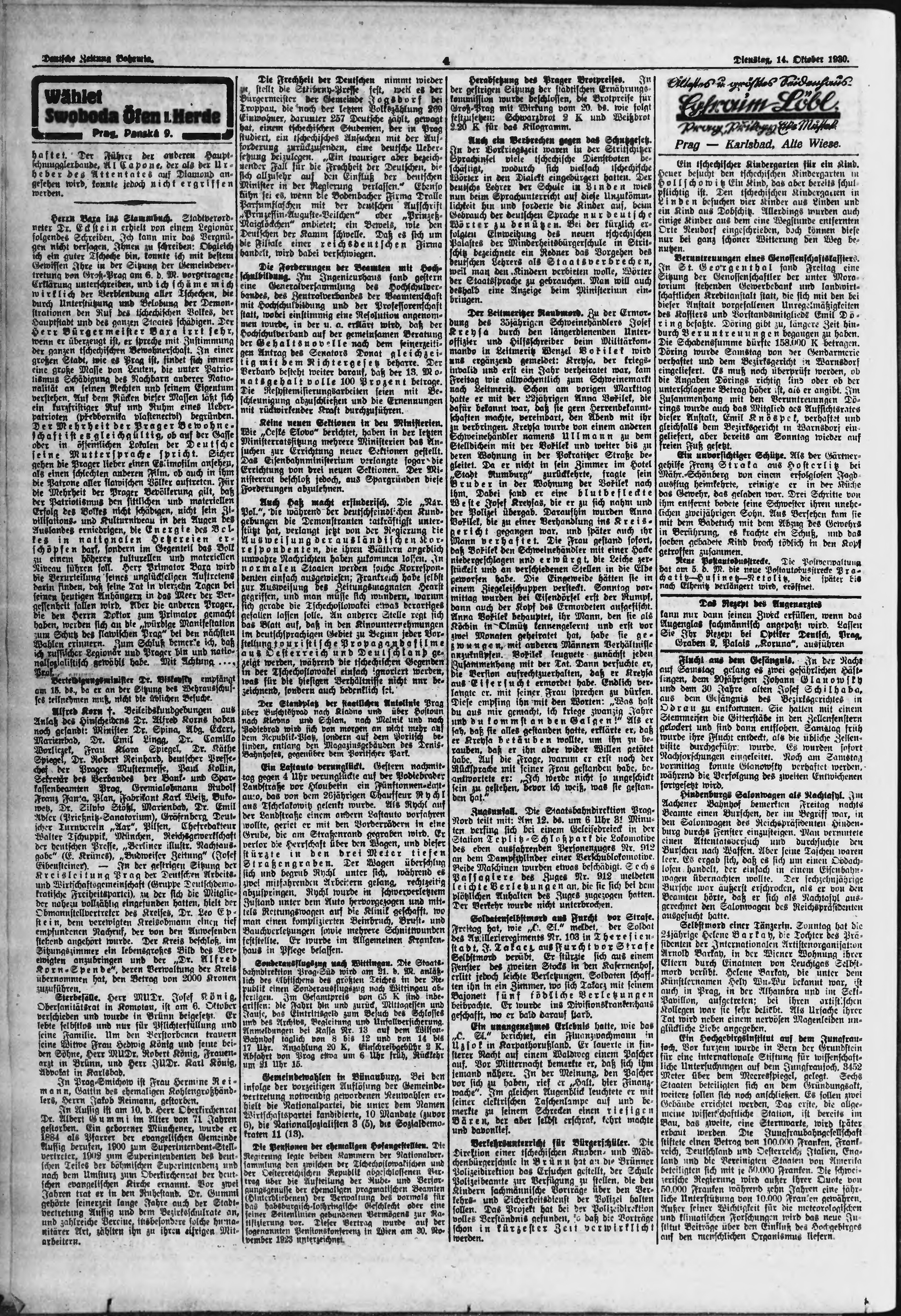 * Datum vydání výtisku: 14.10.1930 Číslo výtisku: 242 Poznámky k výtisku: ranní vydání;