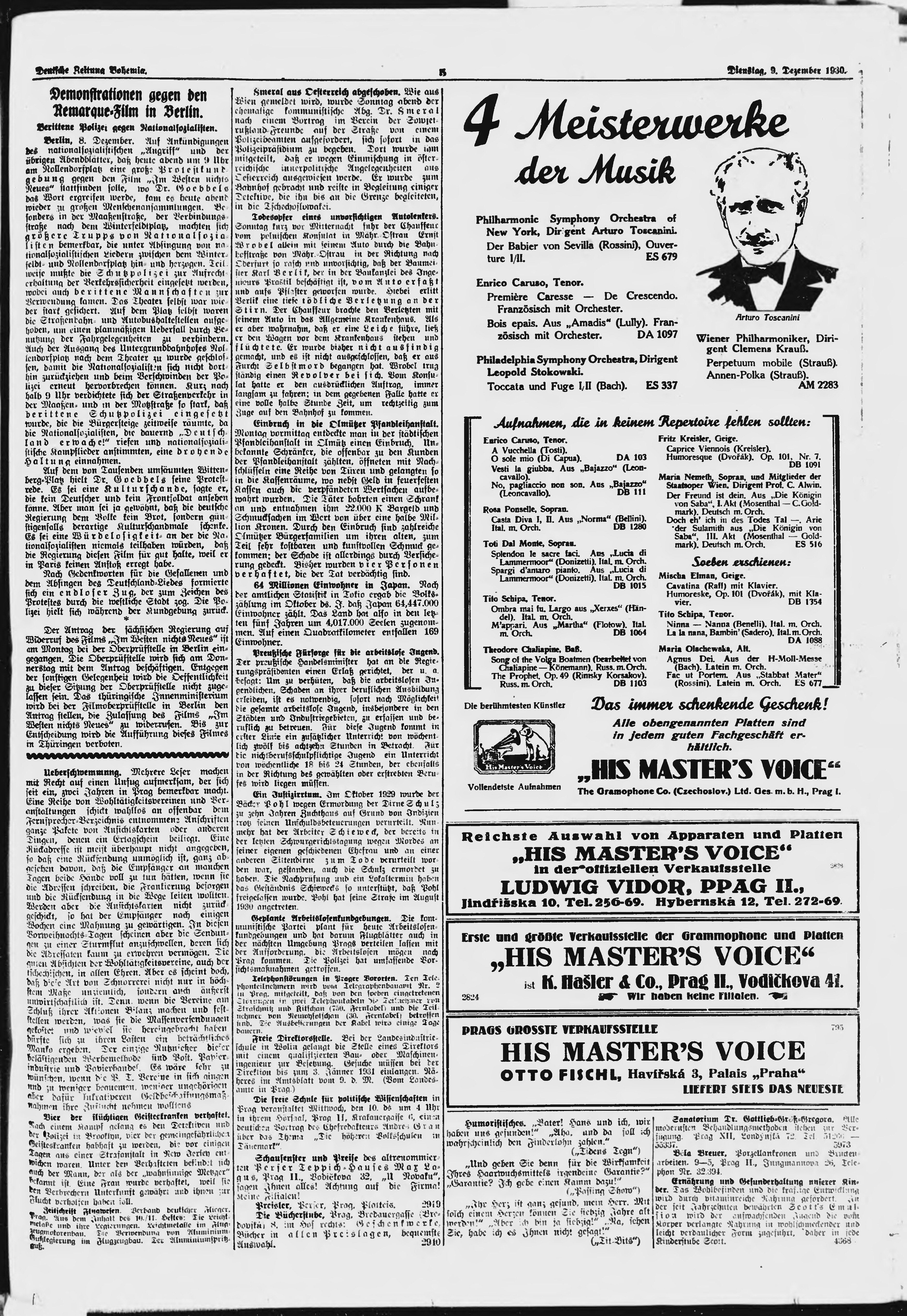 * Datum vydání výtisku: 9.12.1930 Číslo výtisku: 288 Poznámky k výtisku: ranní vydání;
