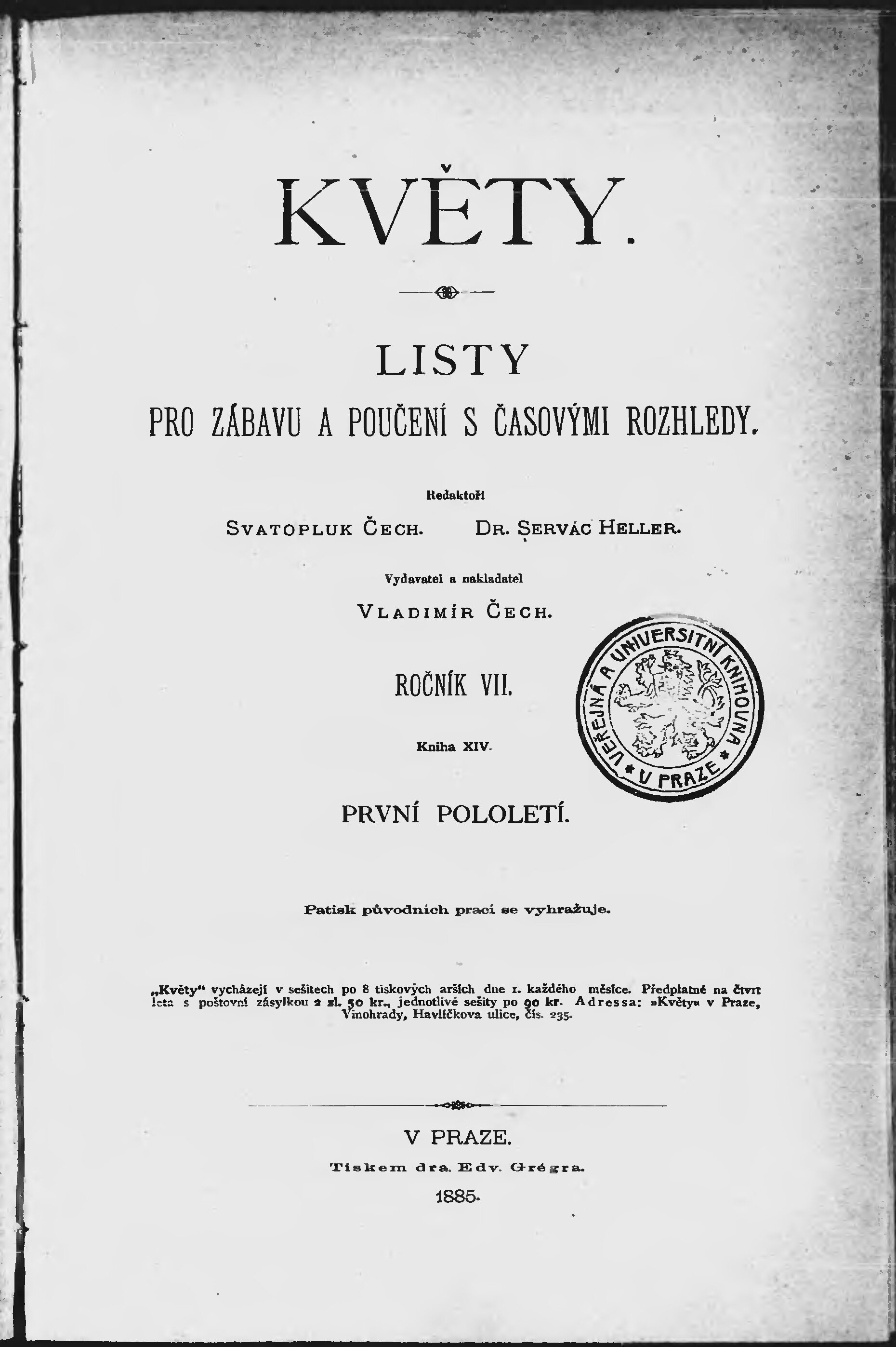 * Datum vydání ročníku: 1885 Číslo ročníku: 7