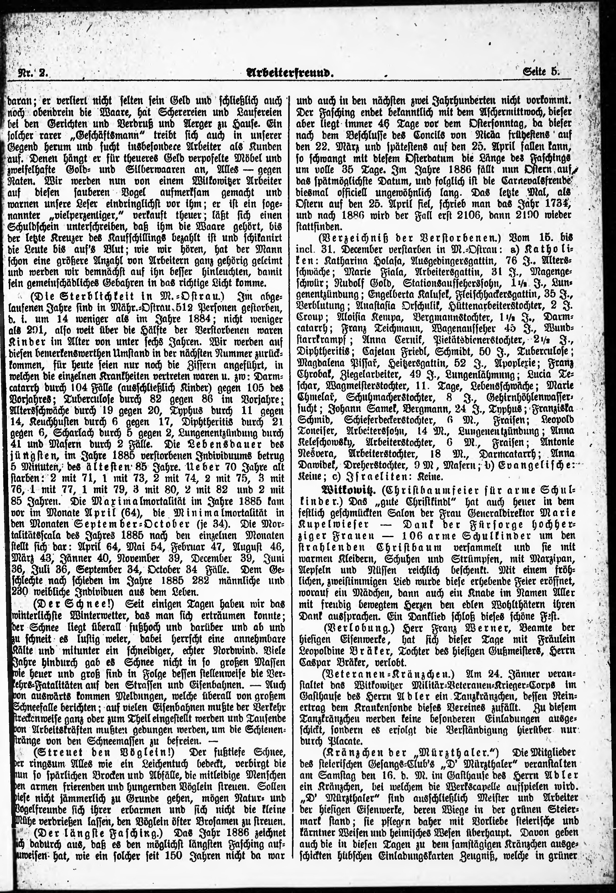 * Datum vydání výtisku: 15.1.1886 Číslo výtisku: 2