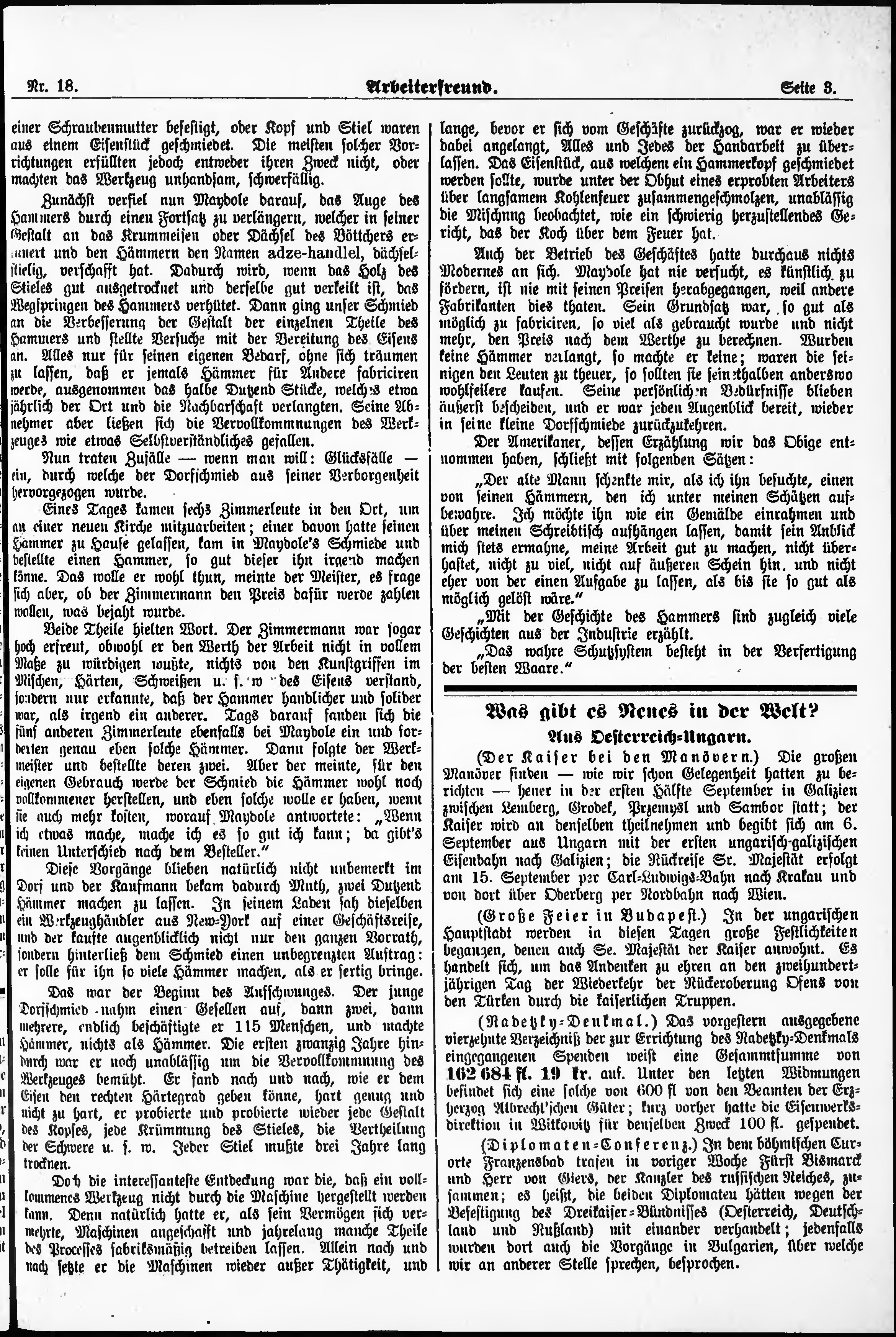 * Datum vydání výtisku: 3.9.1886 Číslo výtisku: 18
