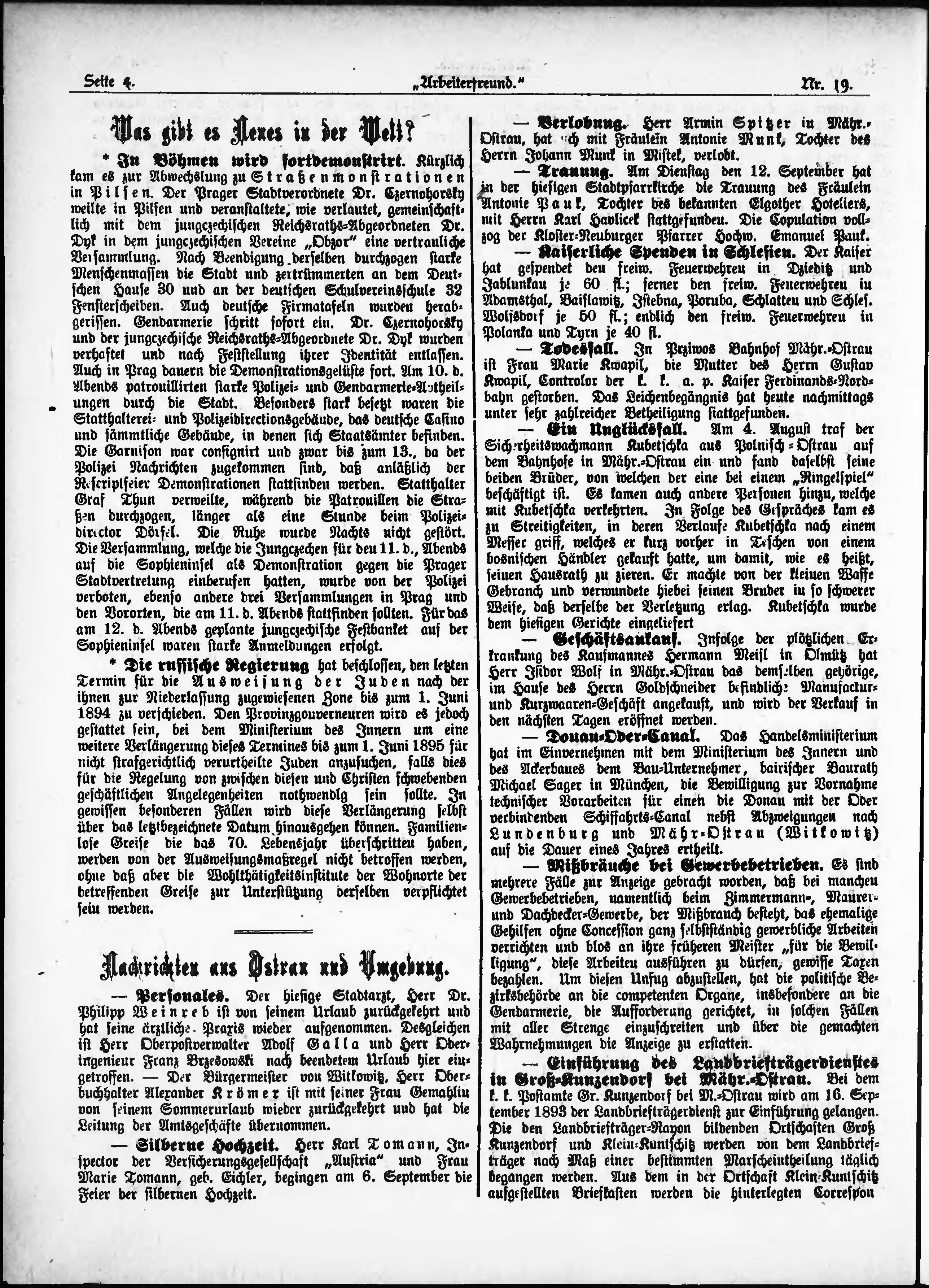 * Datum vydání výtisku: 17.9.1893 Číslo výtisku: 19