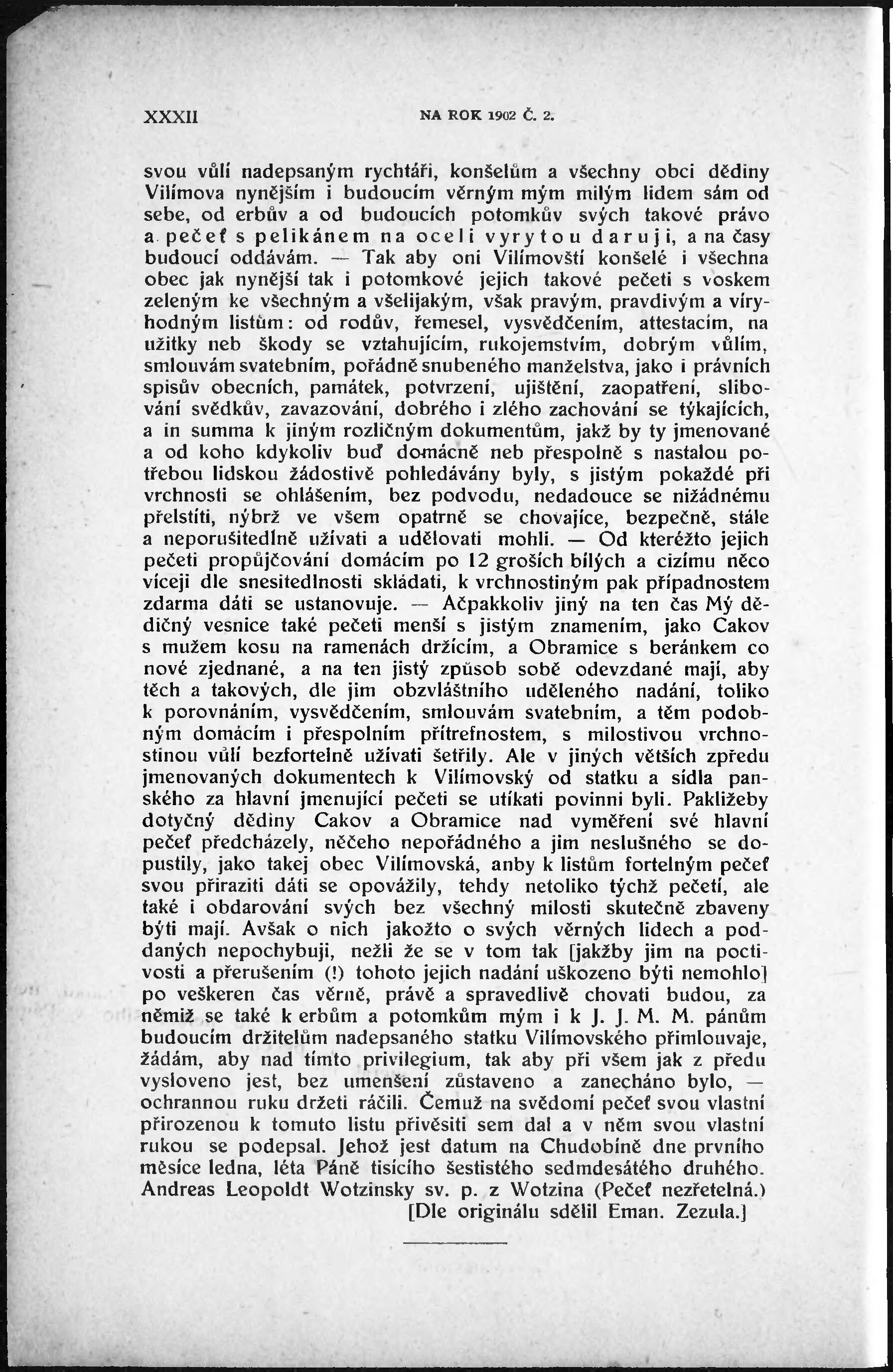 * Datum vydání výtisku: 1902 Číslo výtisku: 2 Typ výtisku: příloha