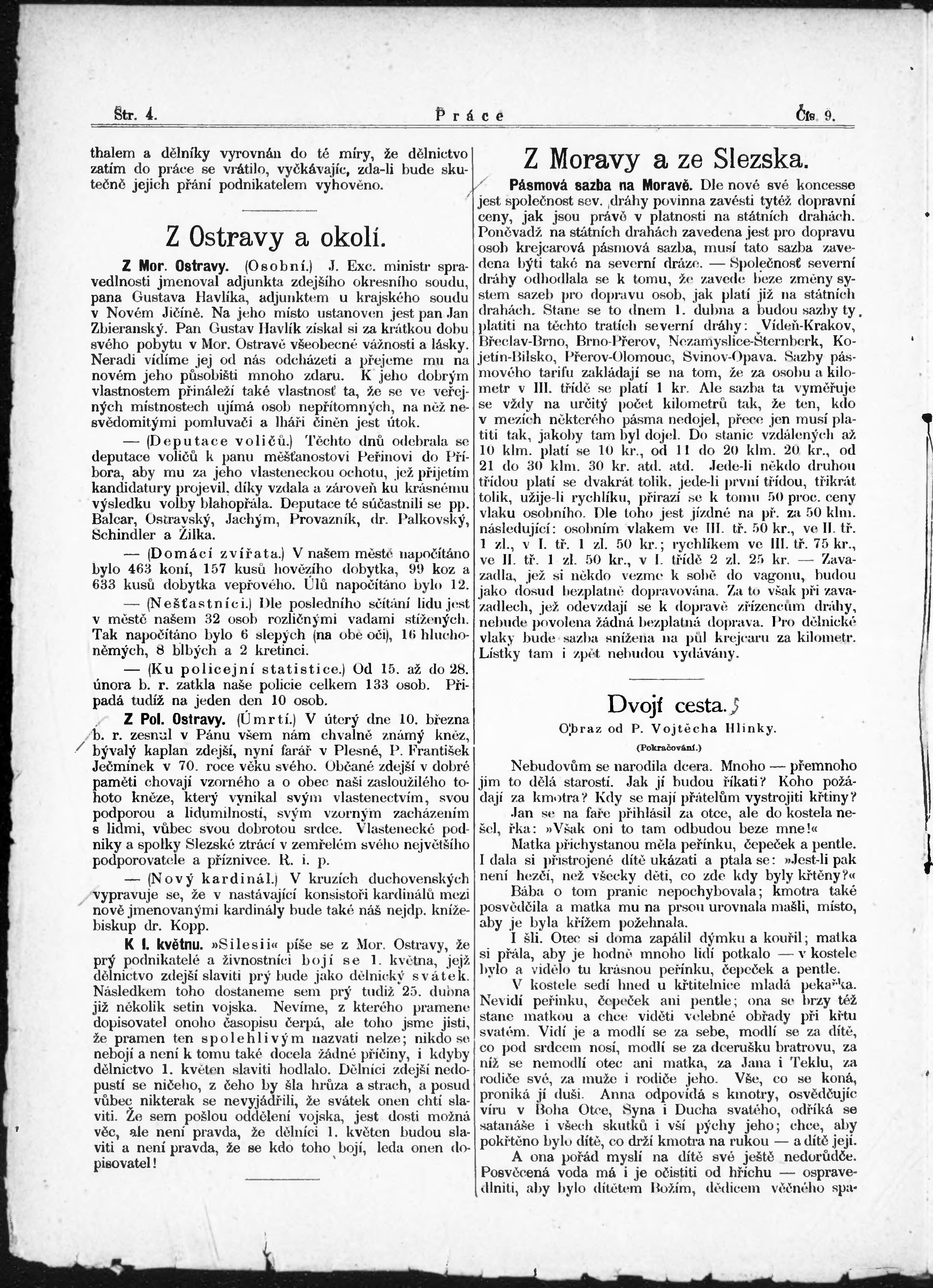 * Datum vydání výtisku: 22.3.1891 Číslo výtisku: 9