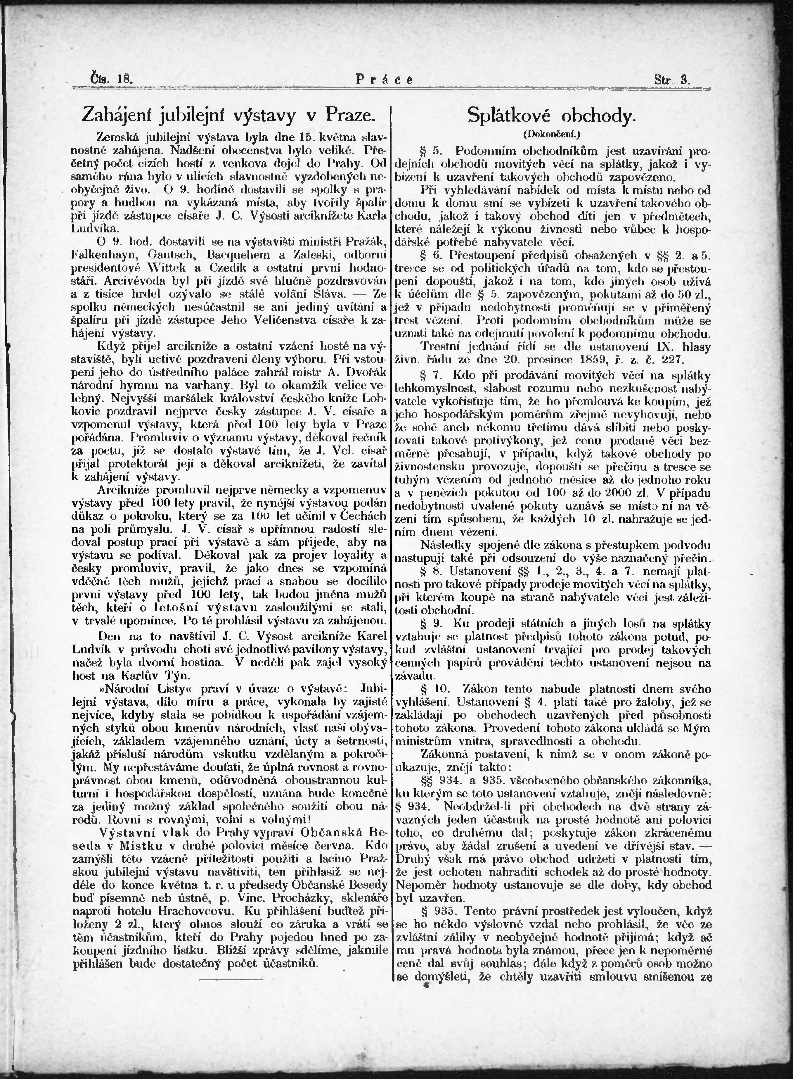* Datum vydání výtisku: 24.5.1891 Číslo výtisku: 18