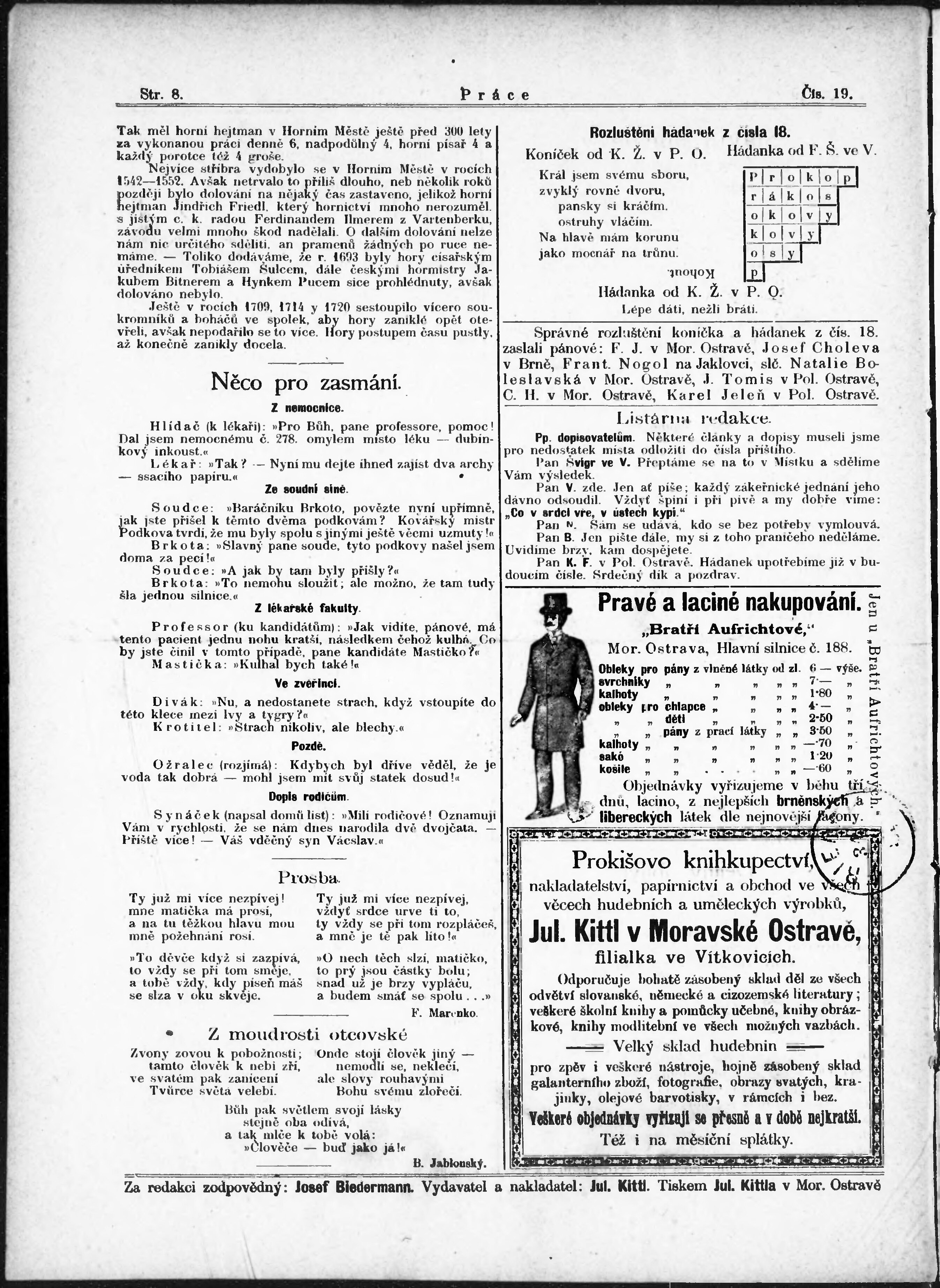 * Datum vydání výtisku: 31.5.1891 Číslo výtisku: 19