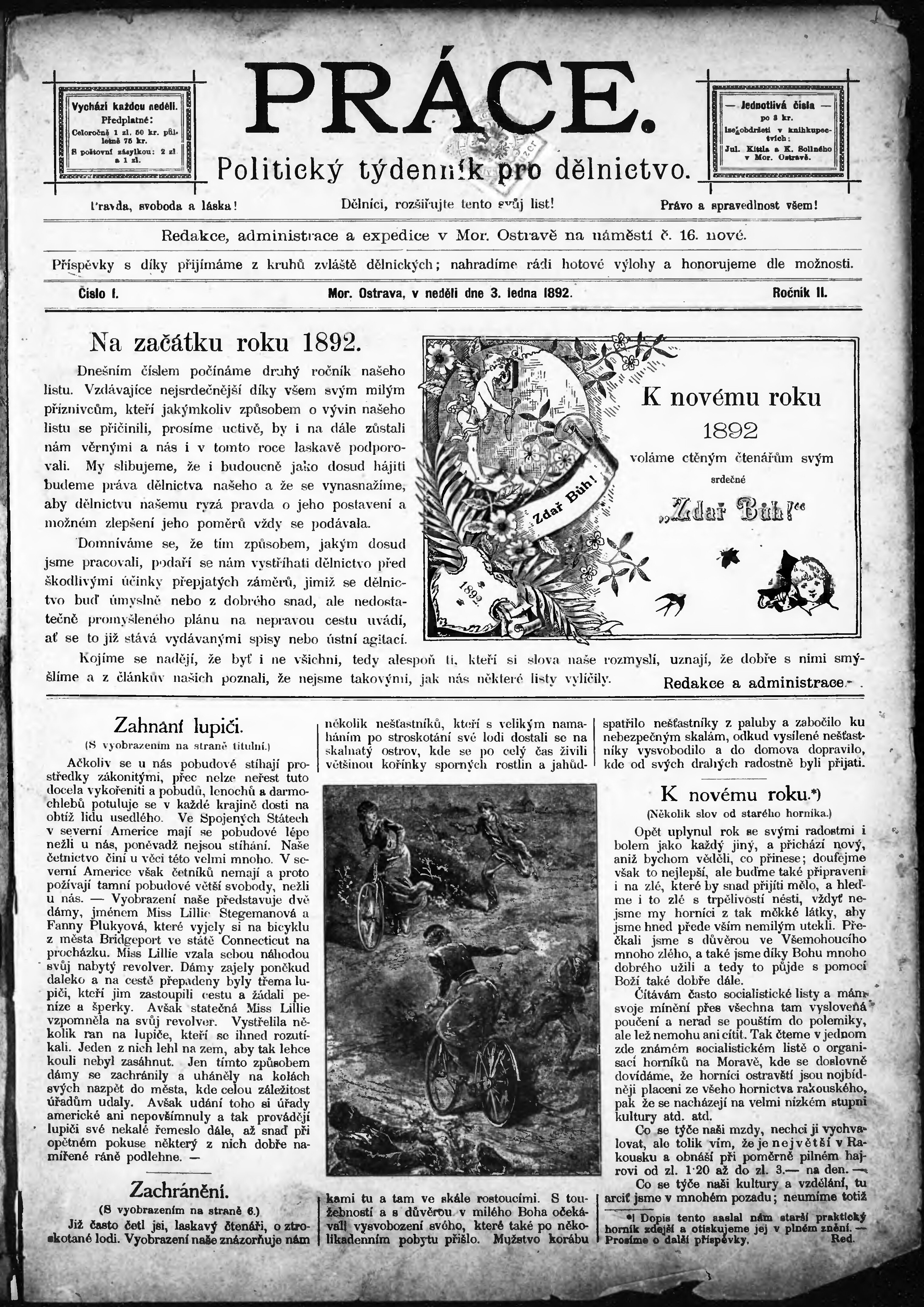 * Datum vydání výtisku: 3.1.1892 Číslo výtisku: 1