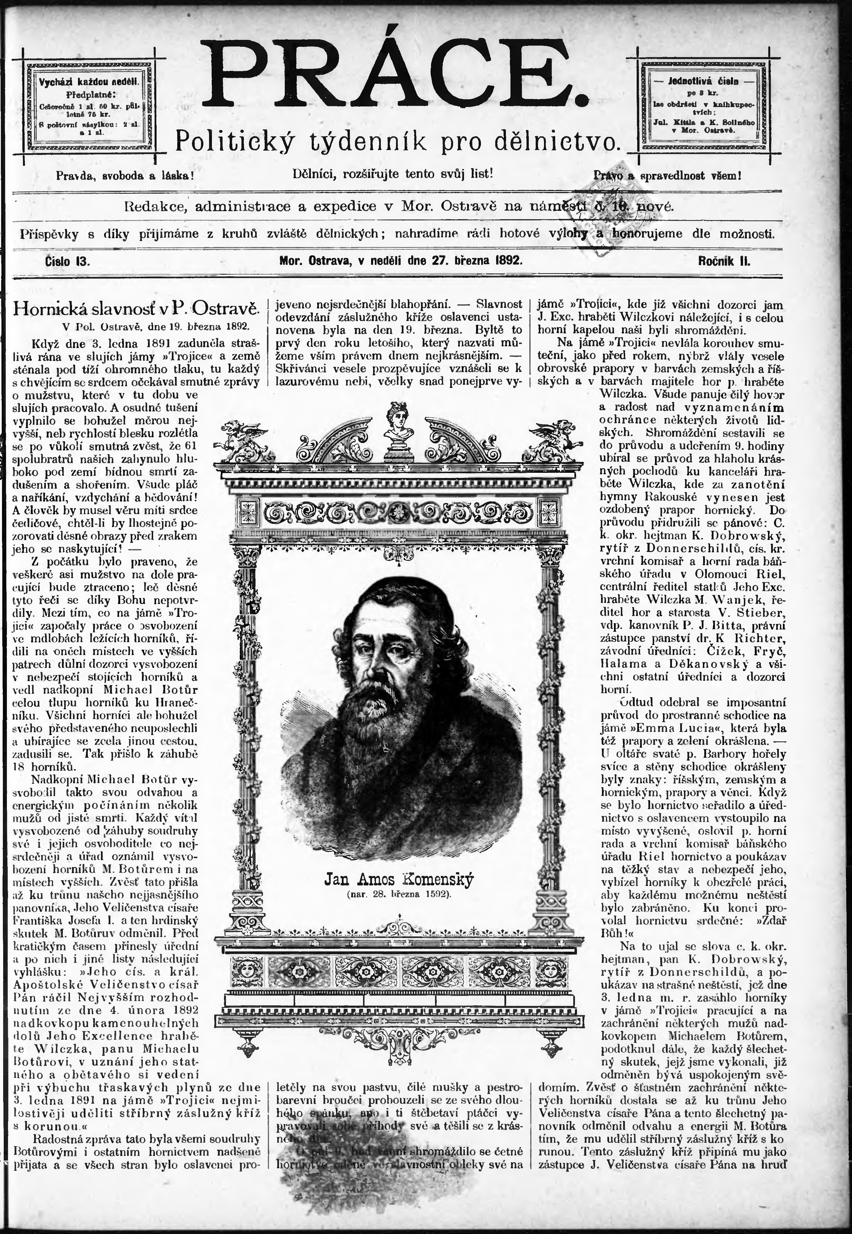 * Datum vydání výtisku: 27.3.1892 Číslo výtisku: 13