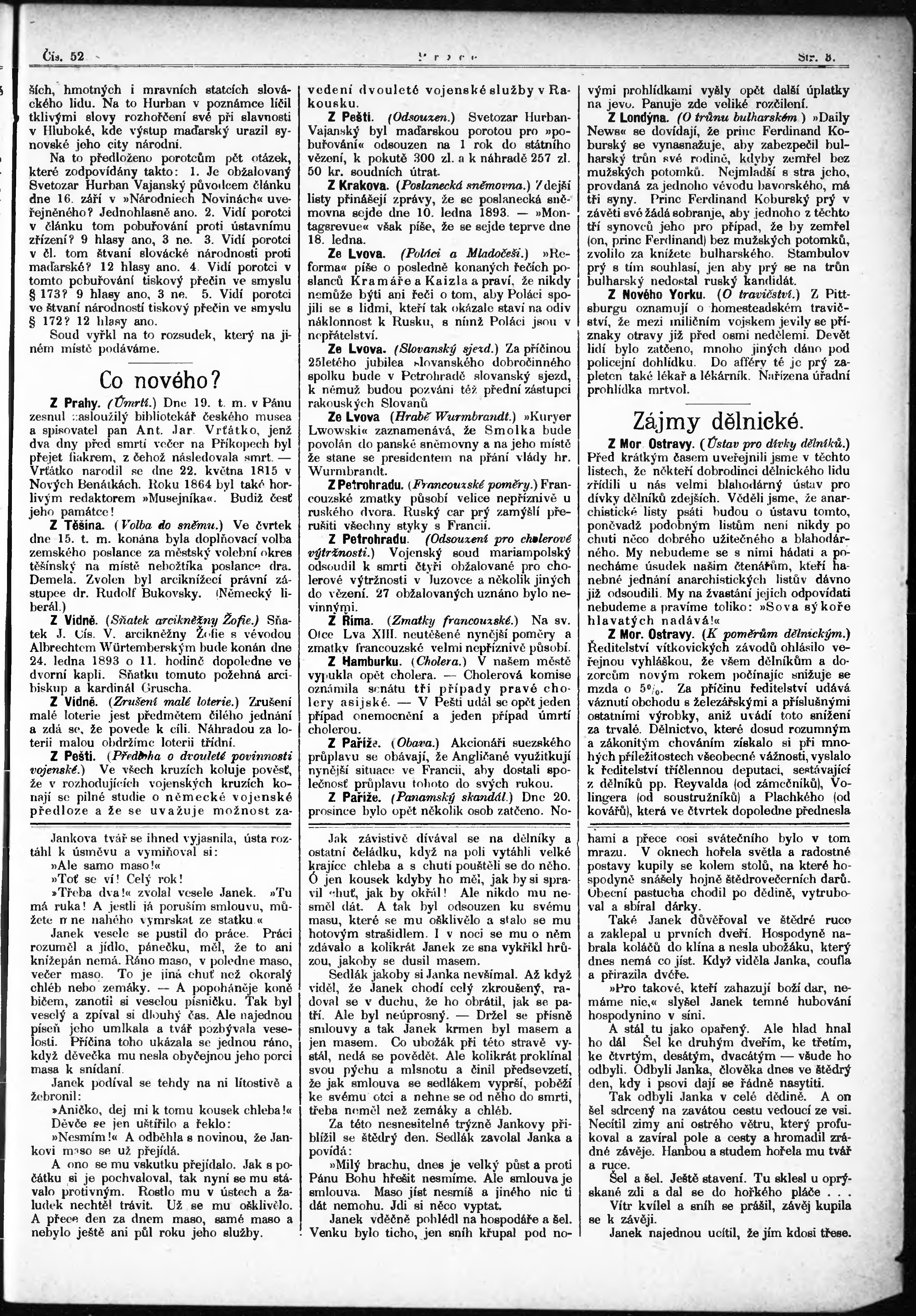* Datum vydání výtisku: 25.12.1892 Číslo výtisku: 52