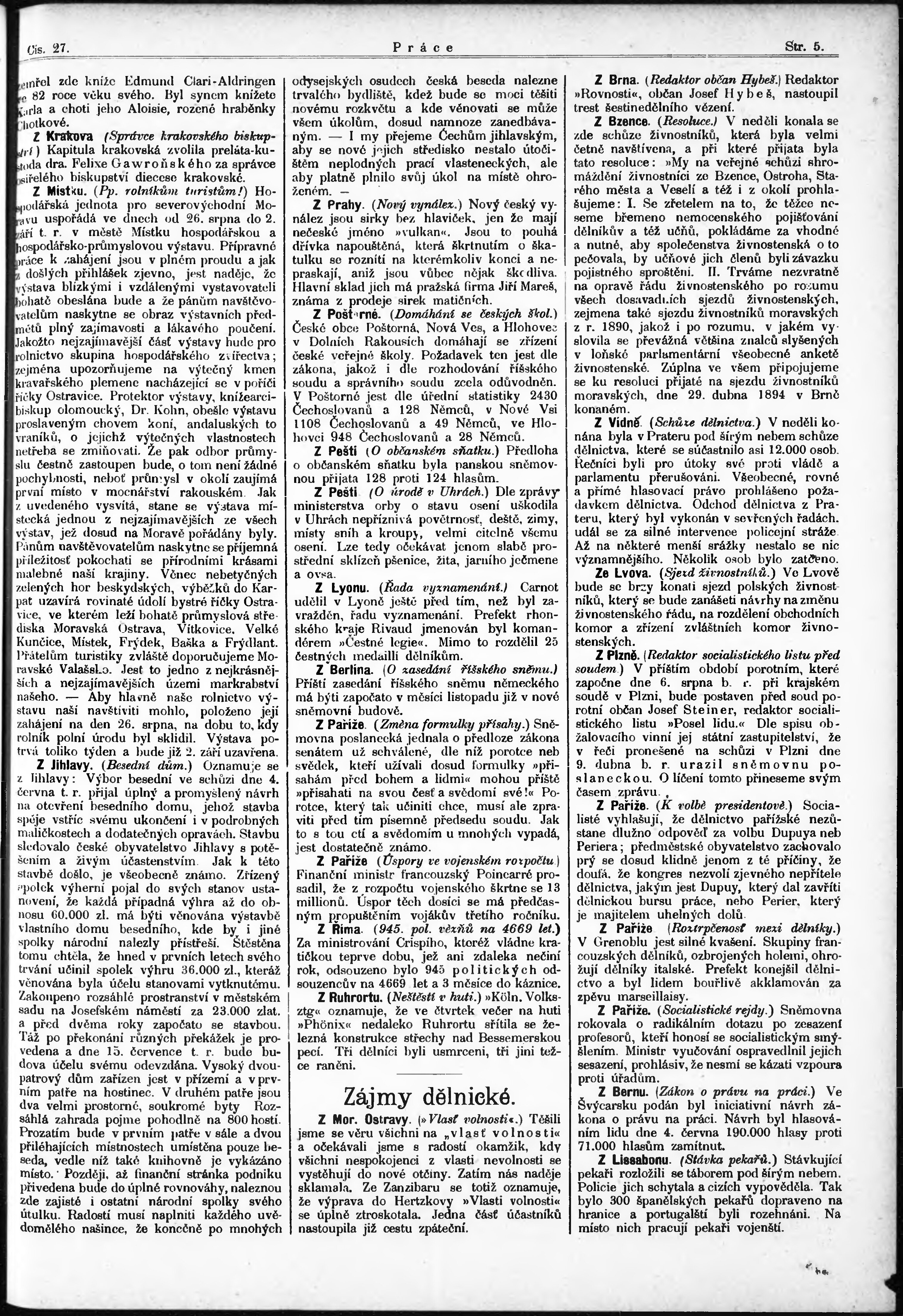 * Datum vydání výtisku: 1.7.1894 Číslo výtisku: 27