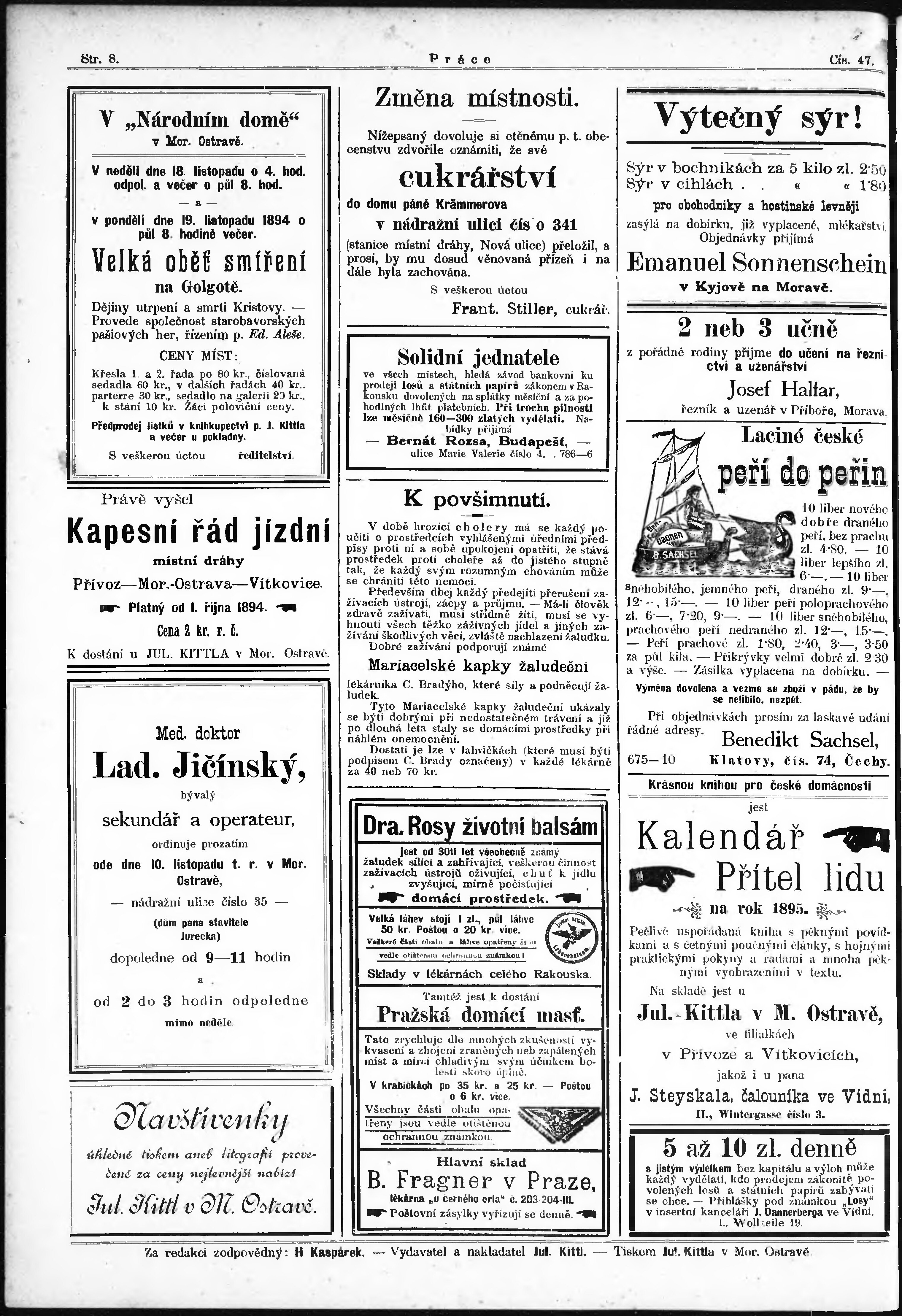 * Datum vydání výtisku: 18.11.1894 Číslo výtisku: 47