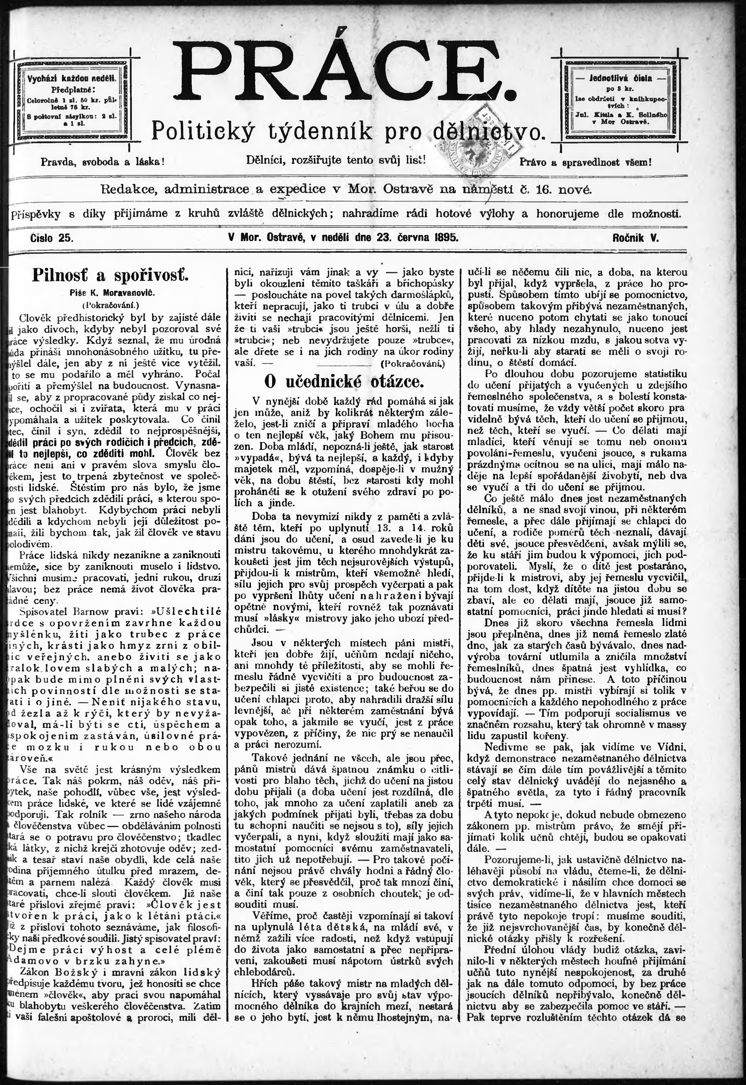 * Datum vydání výtisku: 23.6.1895 Číslo výtisku: 25