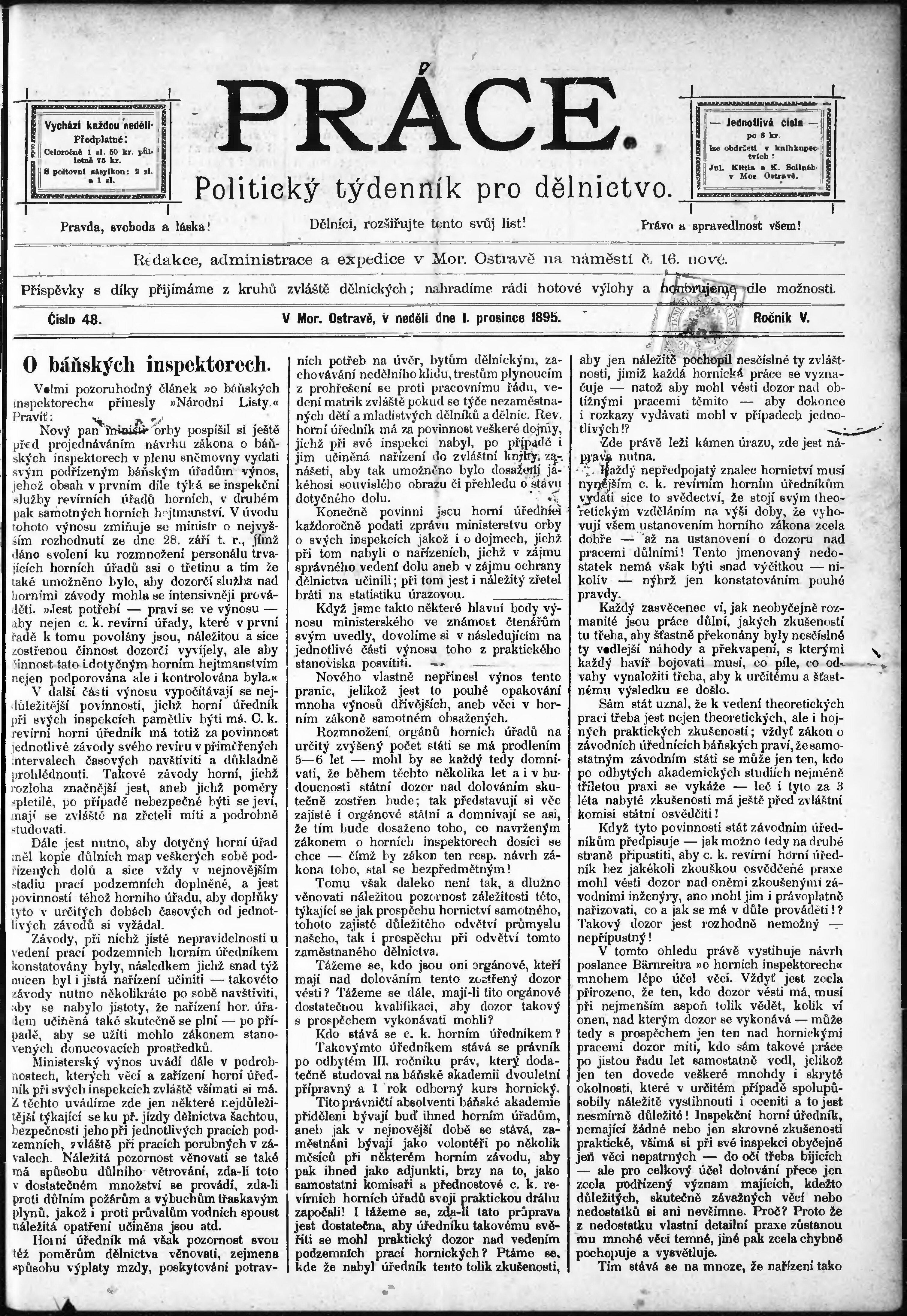 * Datum vydání výtisku: 1.12.1895 Číslo výtisku: 48