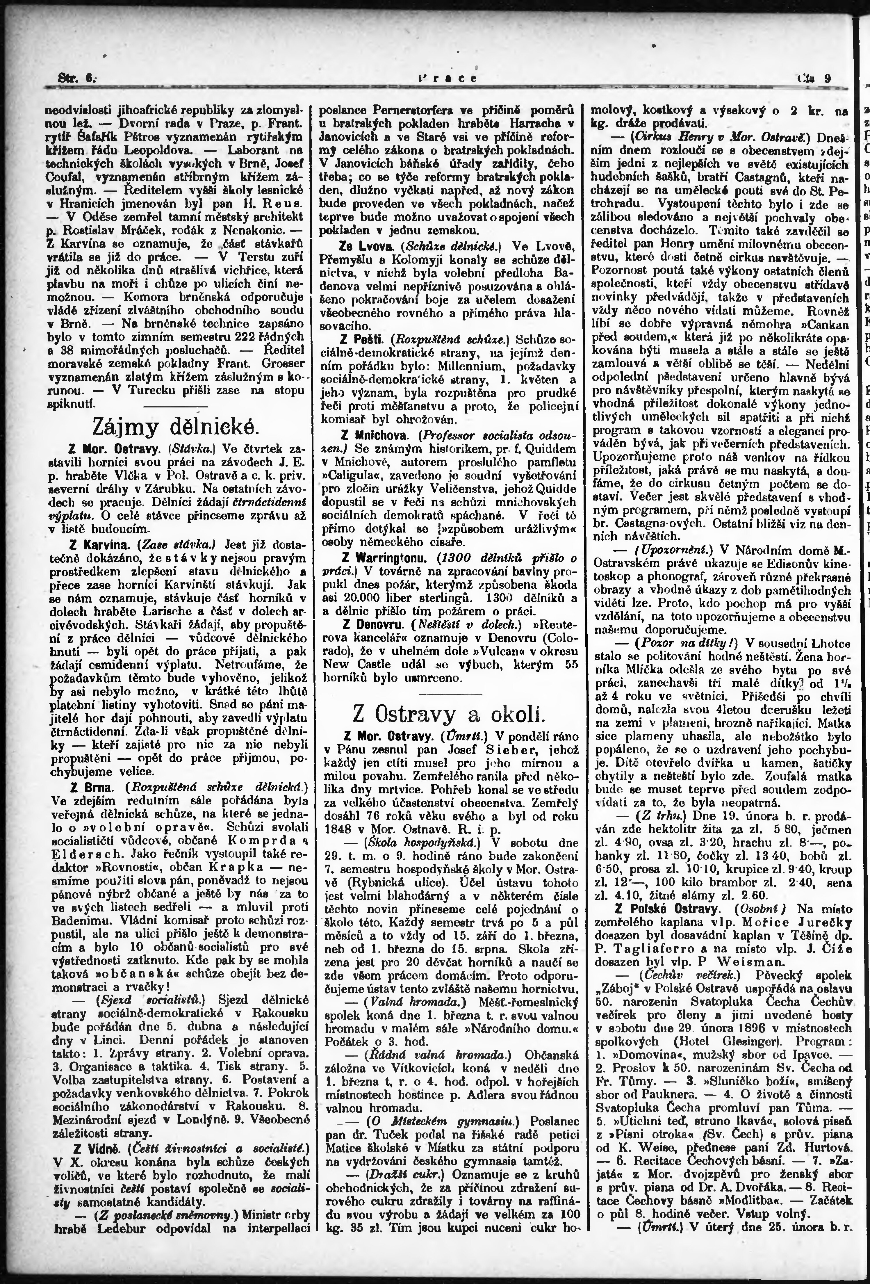 * Datum vydání výtisku: 1.3.1896 Číslo výtisku: 9