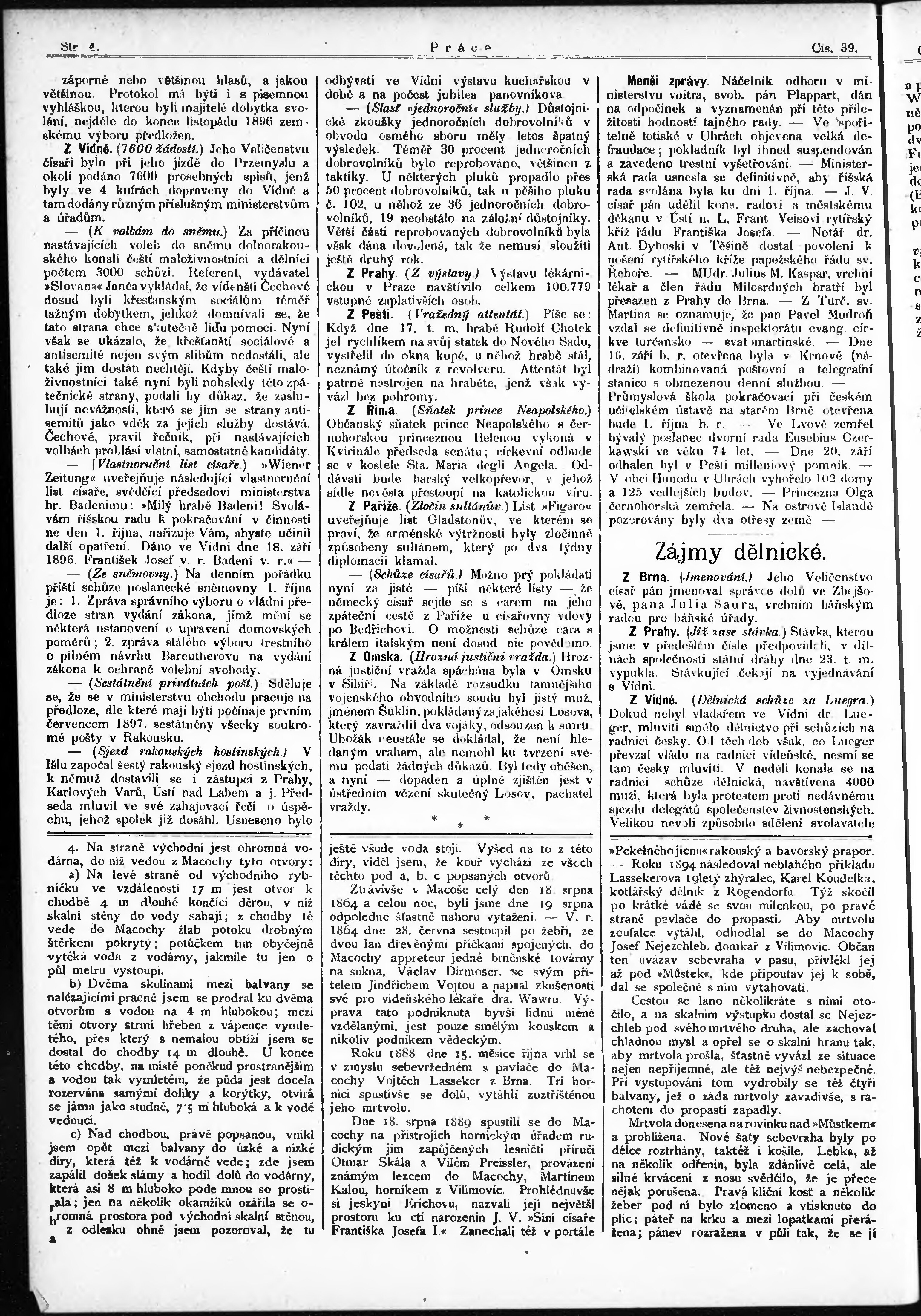 * Datum vydání výtisku: 27.9.1896 Číslo výtisku: 39