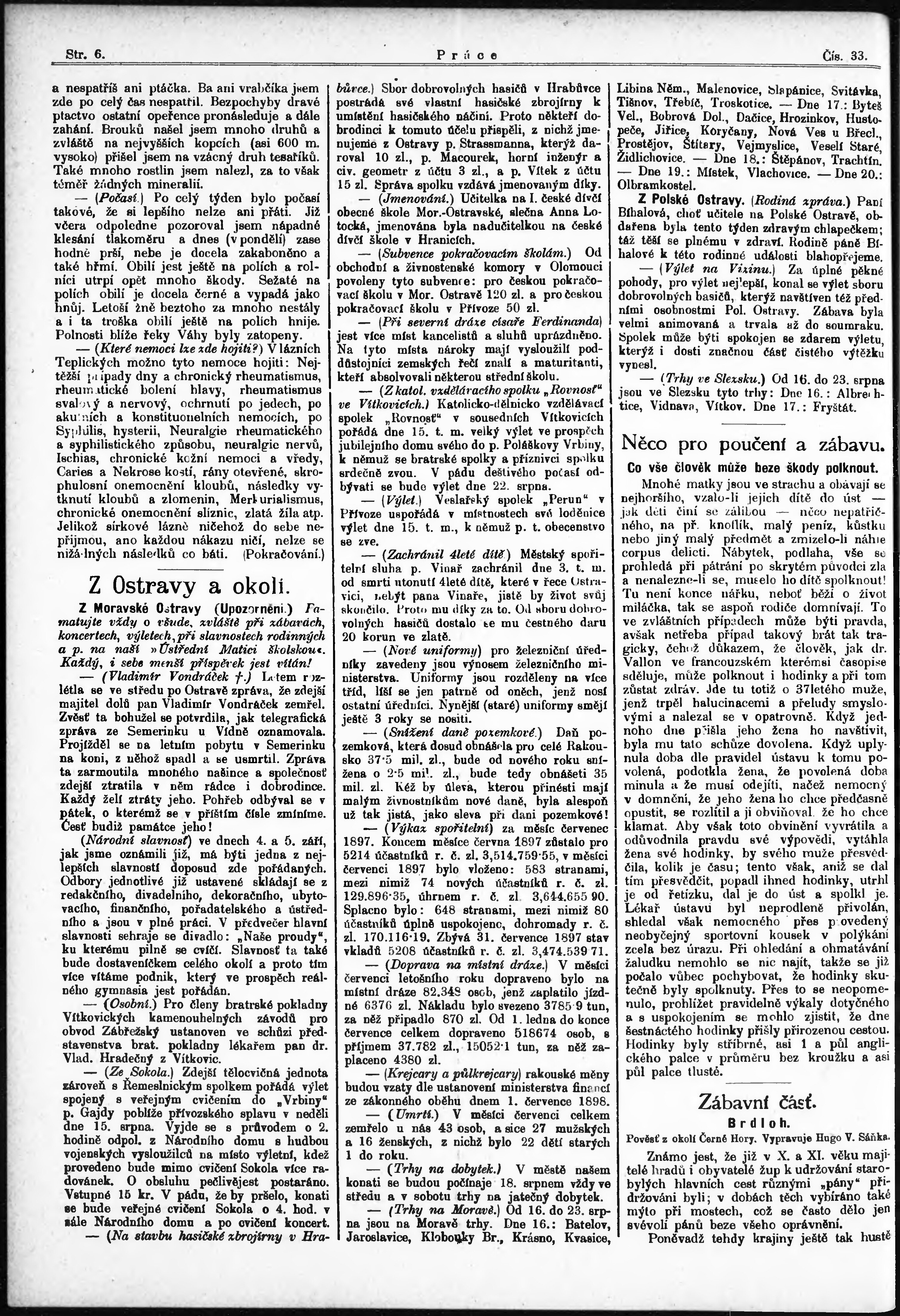 * Datum vydání výtisku: 15.8.1897 Číslo výtisku: 33