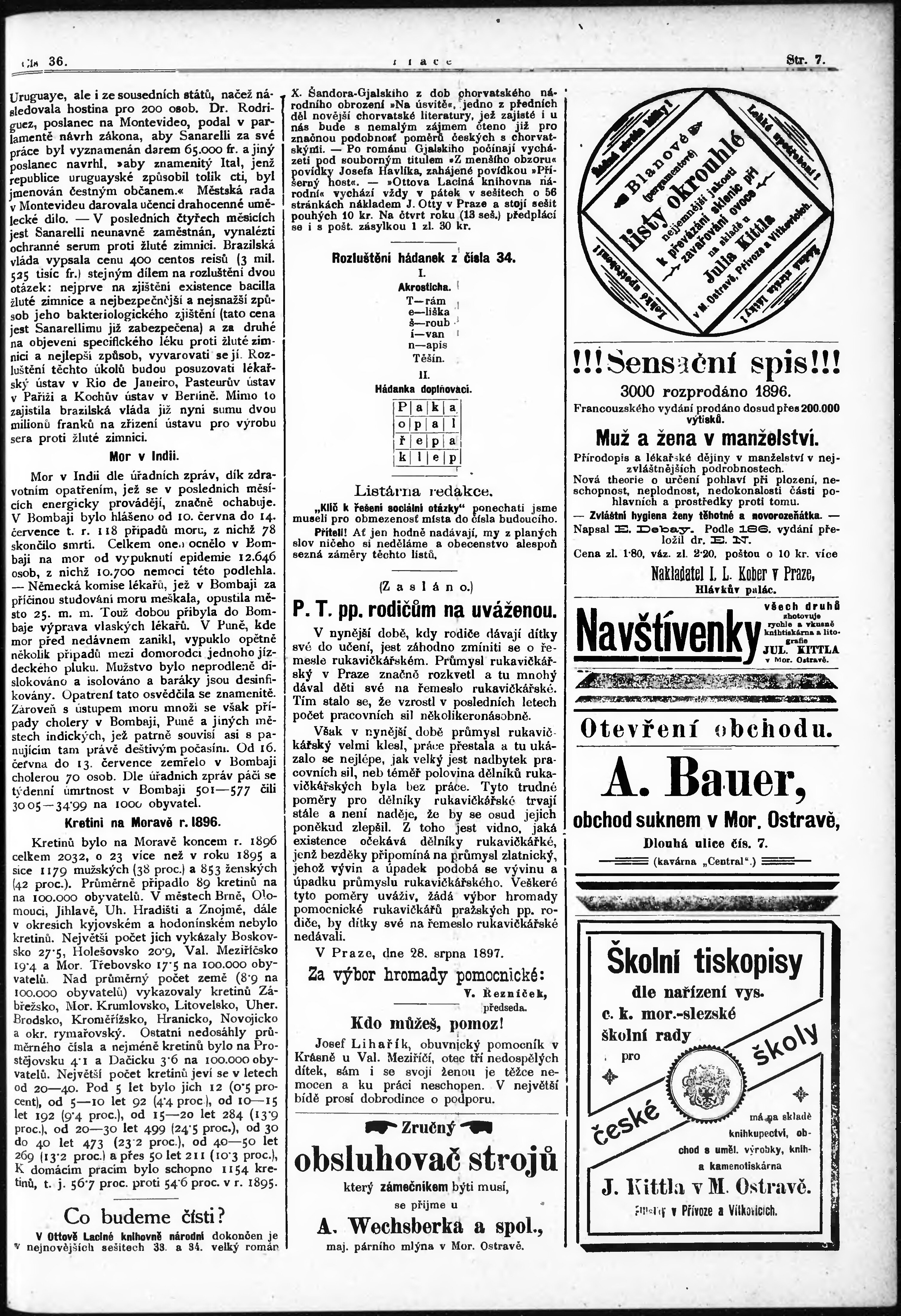 * Datum vydání výtisku: 5.9.1897 Číslo výtisku: 36