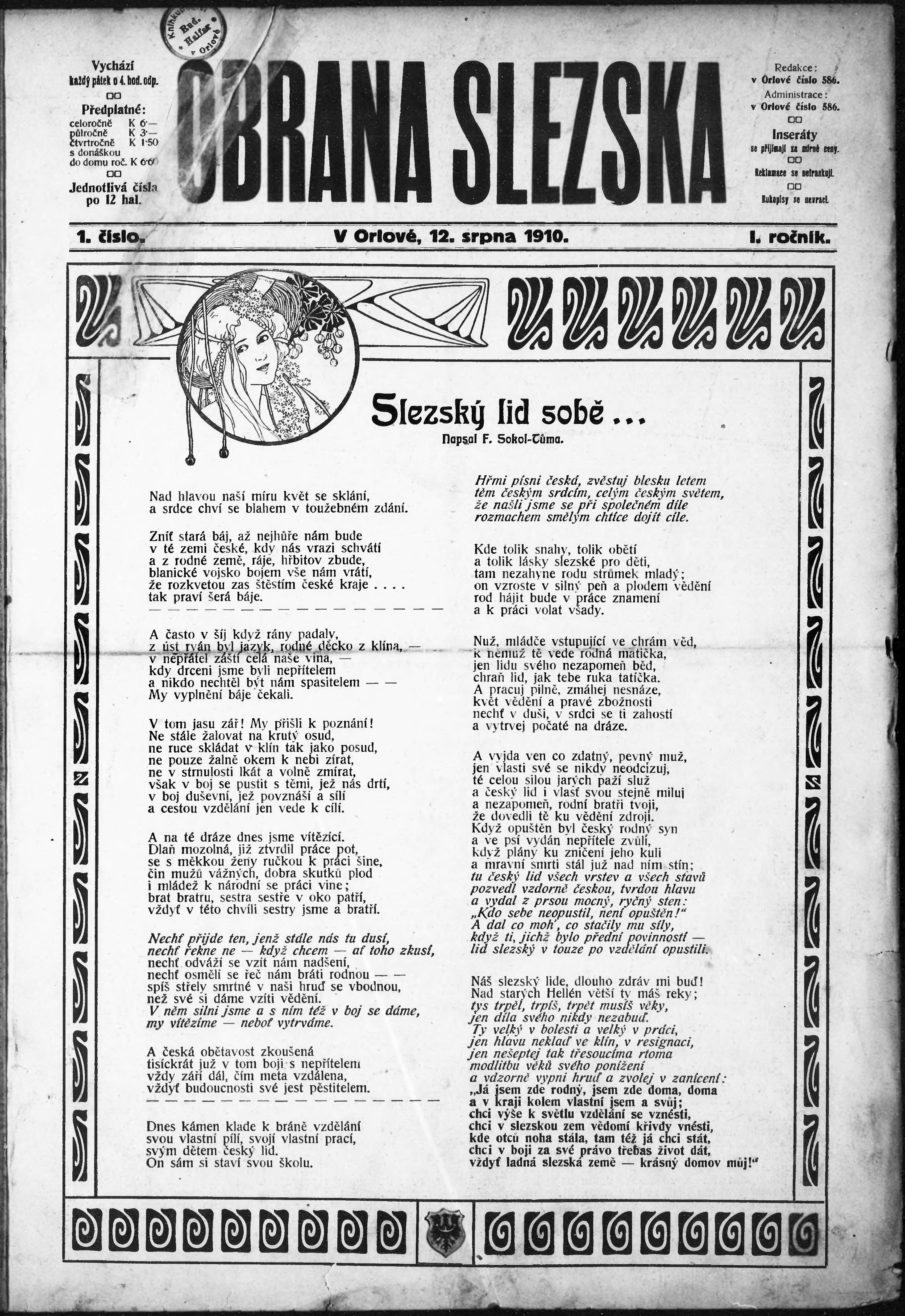 * Datum vydání výtisku: 12.8.1910 Číslo výtisku: 1