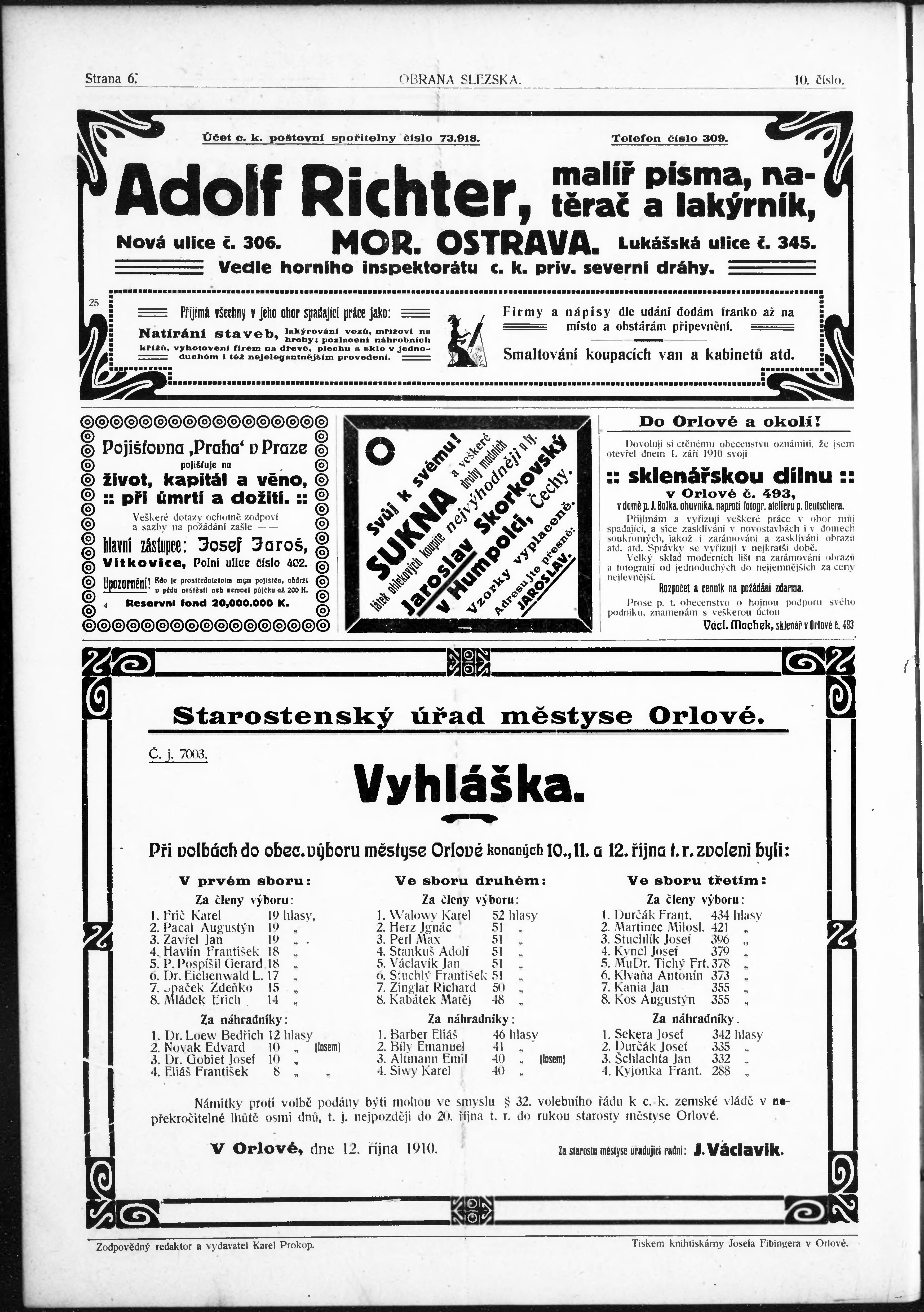 * Datum vydání výtisku: 14.10.1910 Číslo výtisku: 10