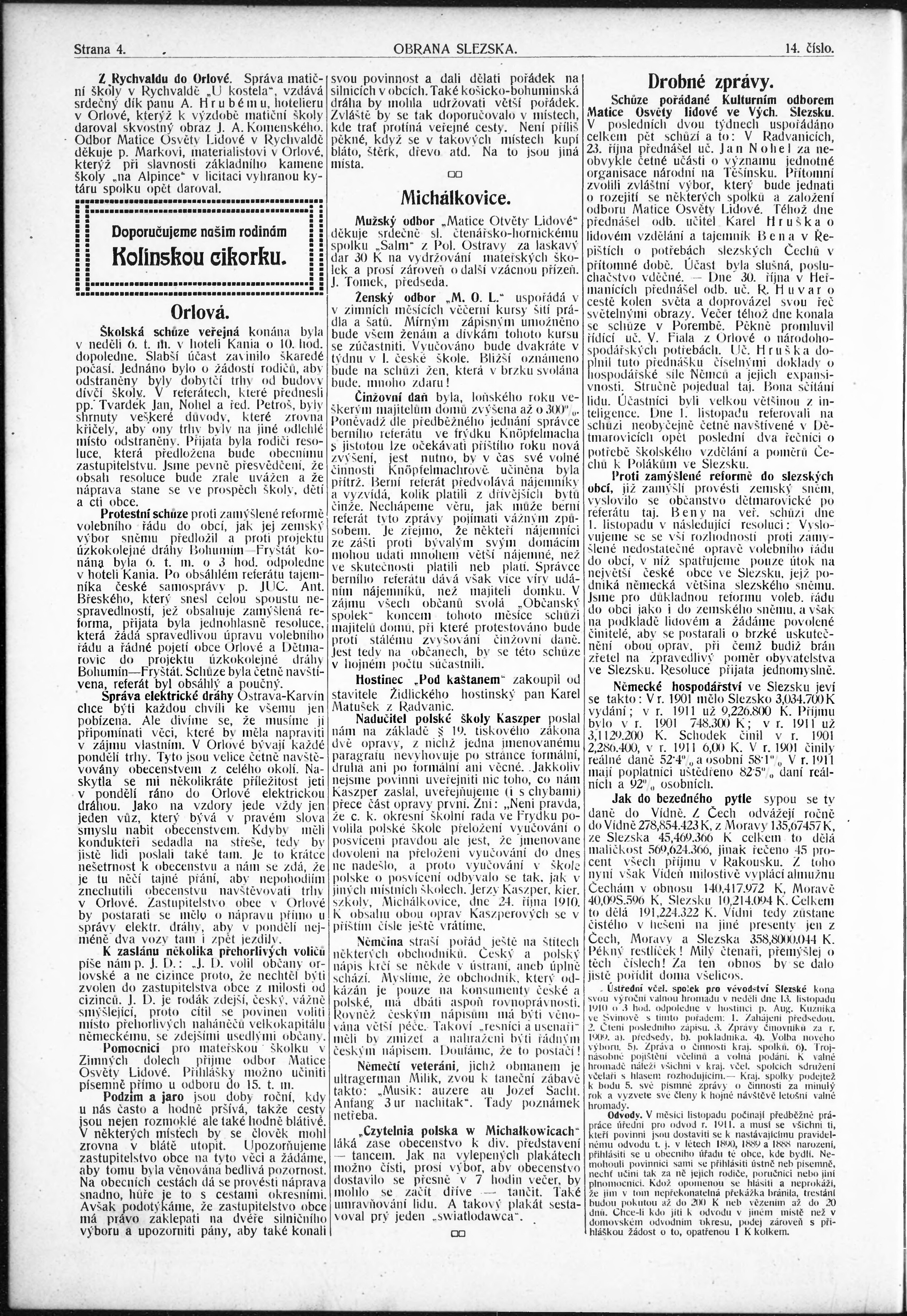 * Datum vydání výtisku: 11.11.1910 Číslo výtisku: 14