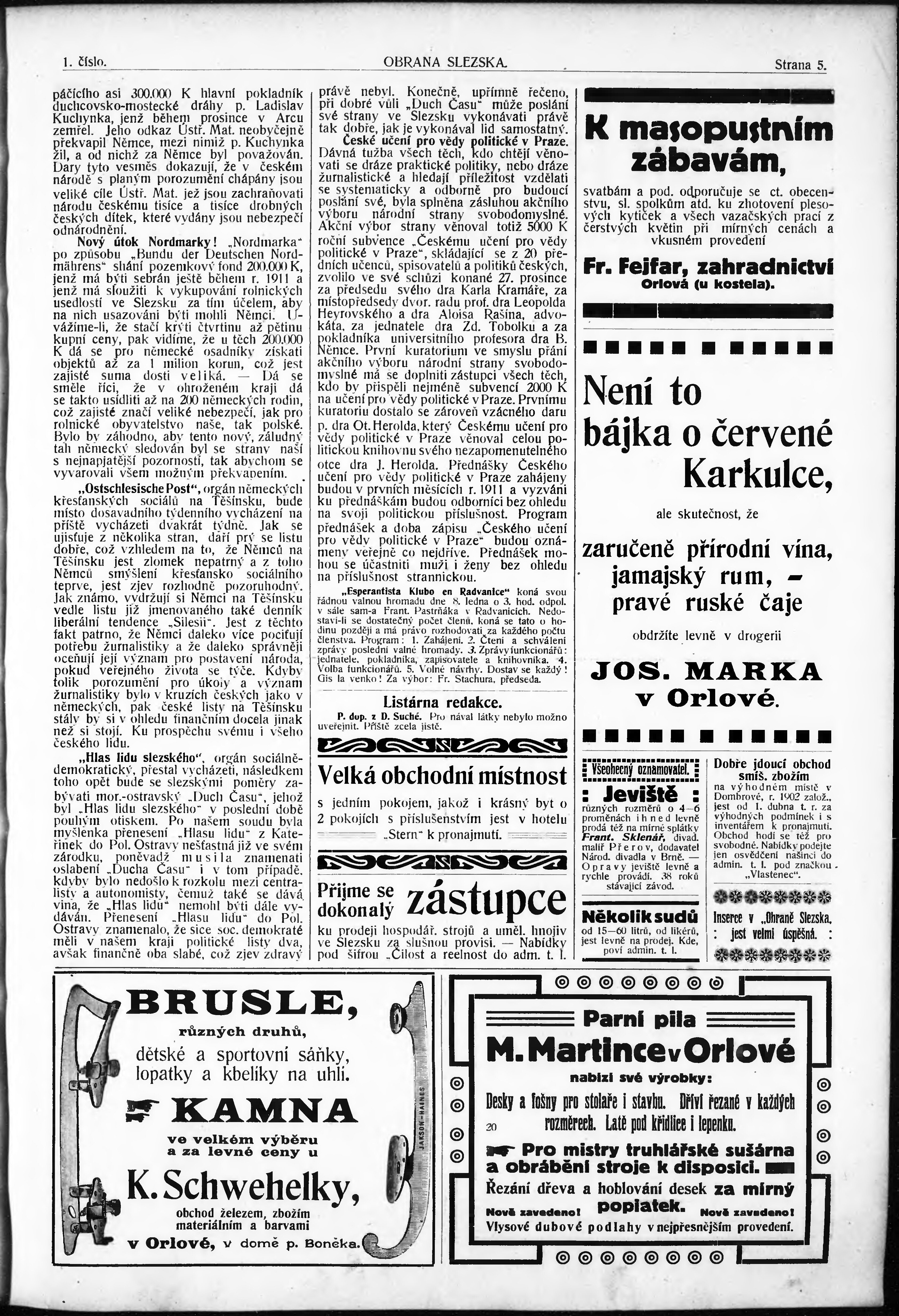 * Datum vydání výtisku: 6.1.1911 Číslo výtisku: 1 Poznámky k výtisku: chybný údaj v dataci;