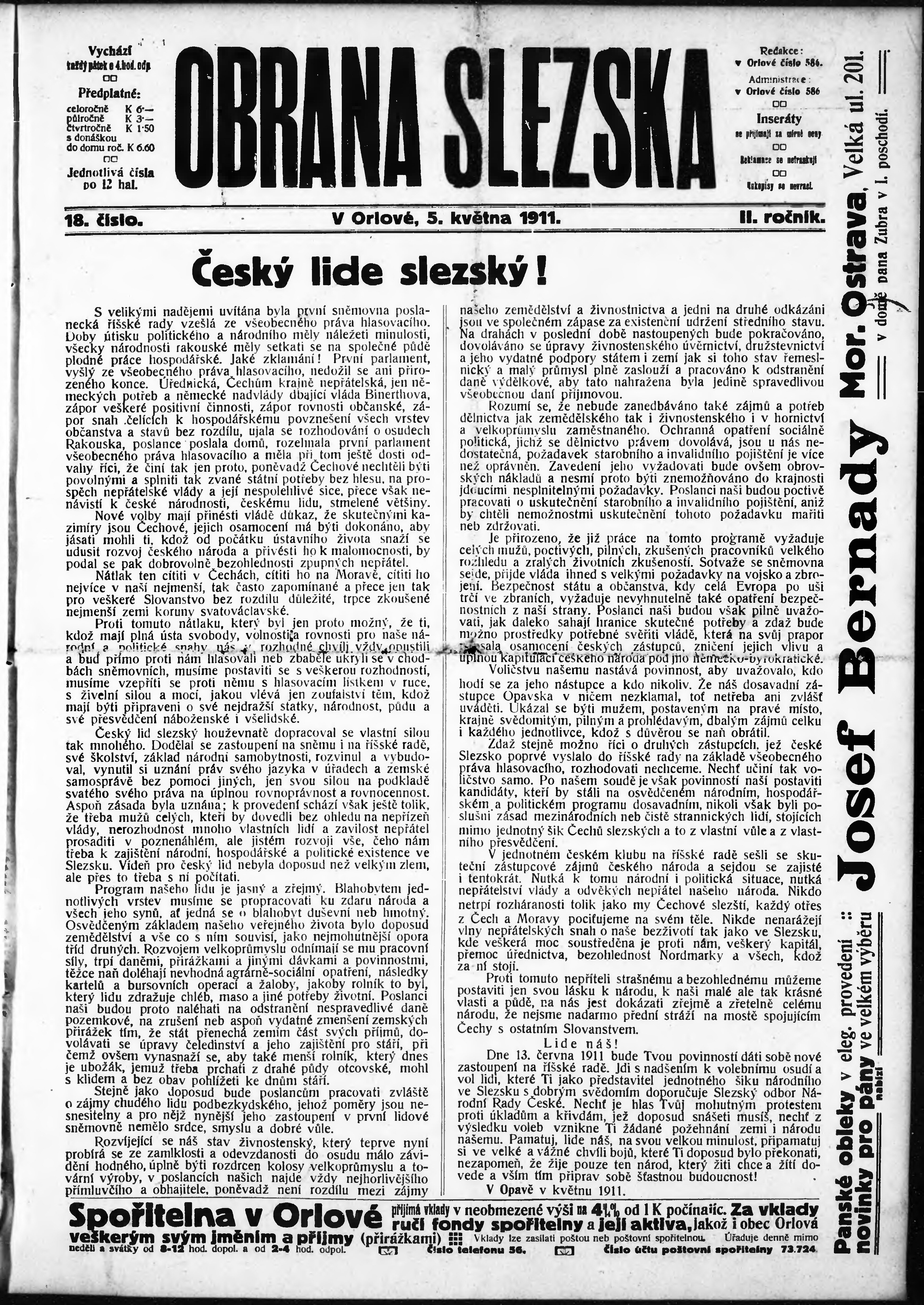 * Datum vydání výtisku: 5.5.1911 Číslo výtisku: 18