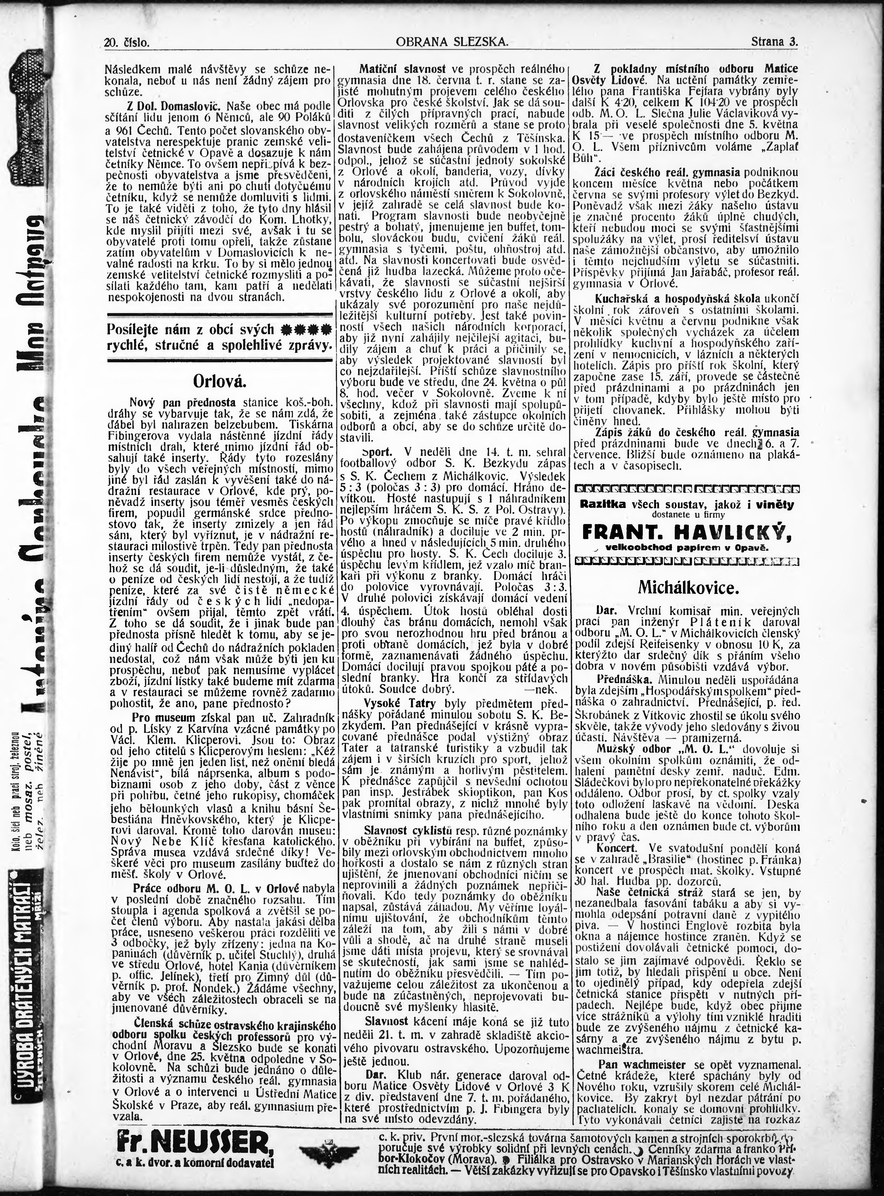 * Datum vydání výtisku: 19.5.1911 Číslo výtisku: 20
