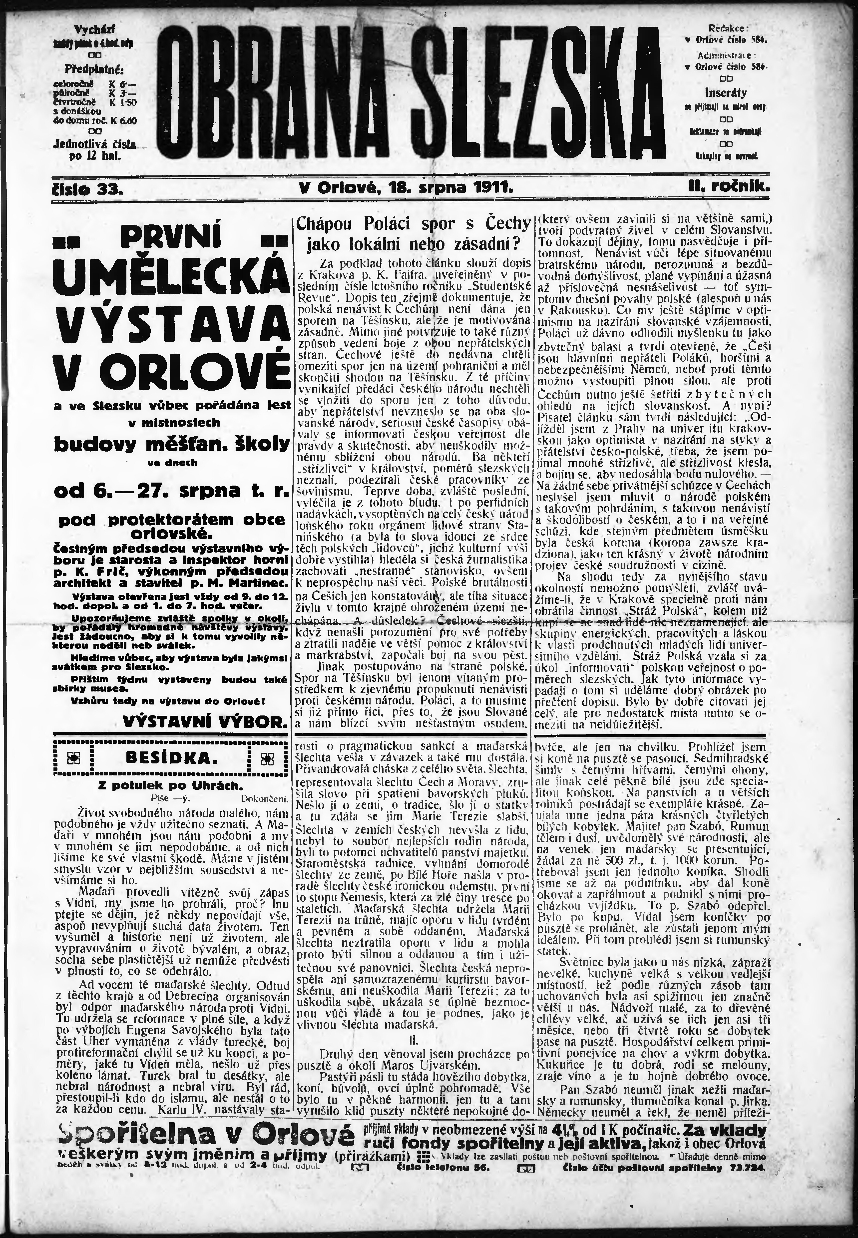 * Datum vydání výtisku: 18.8.1911 Číslo výtisku: 33