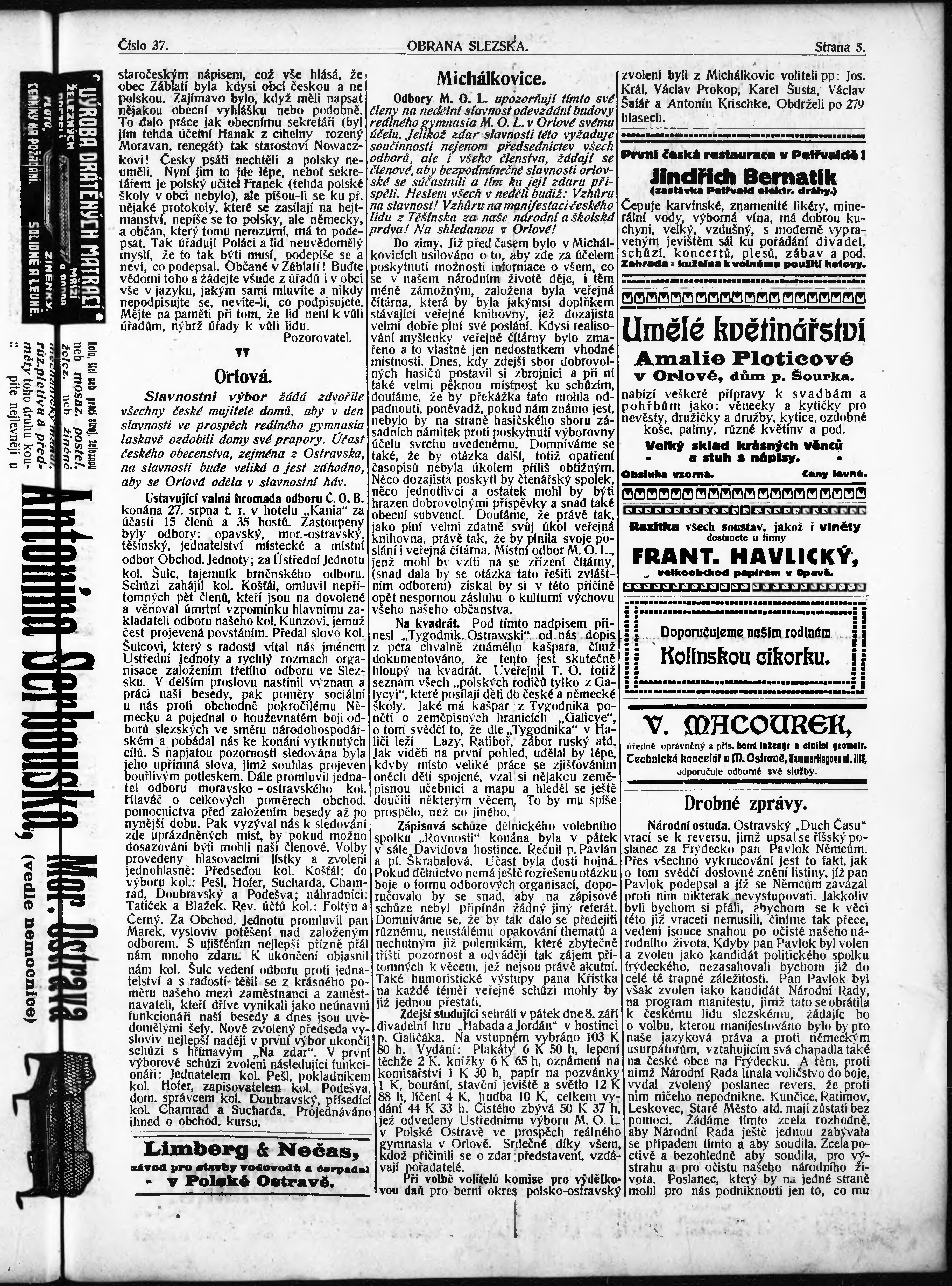 * Datum vydání výtisku: 15.9.1911 Číslo výtisku: 37