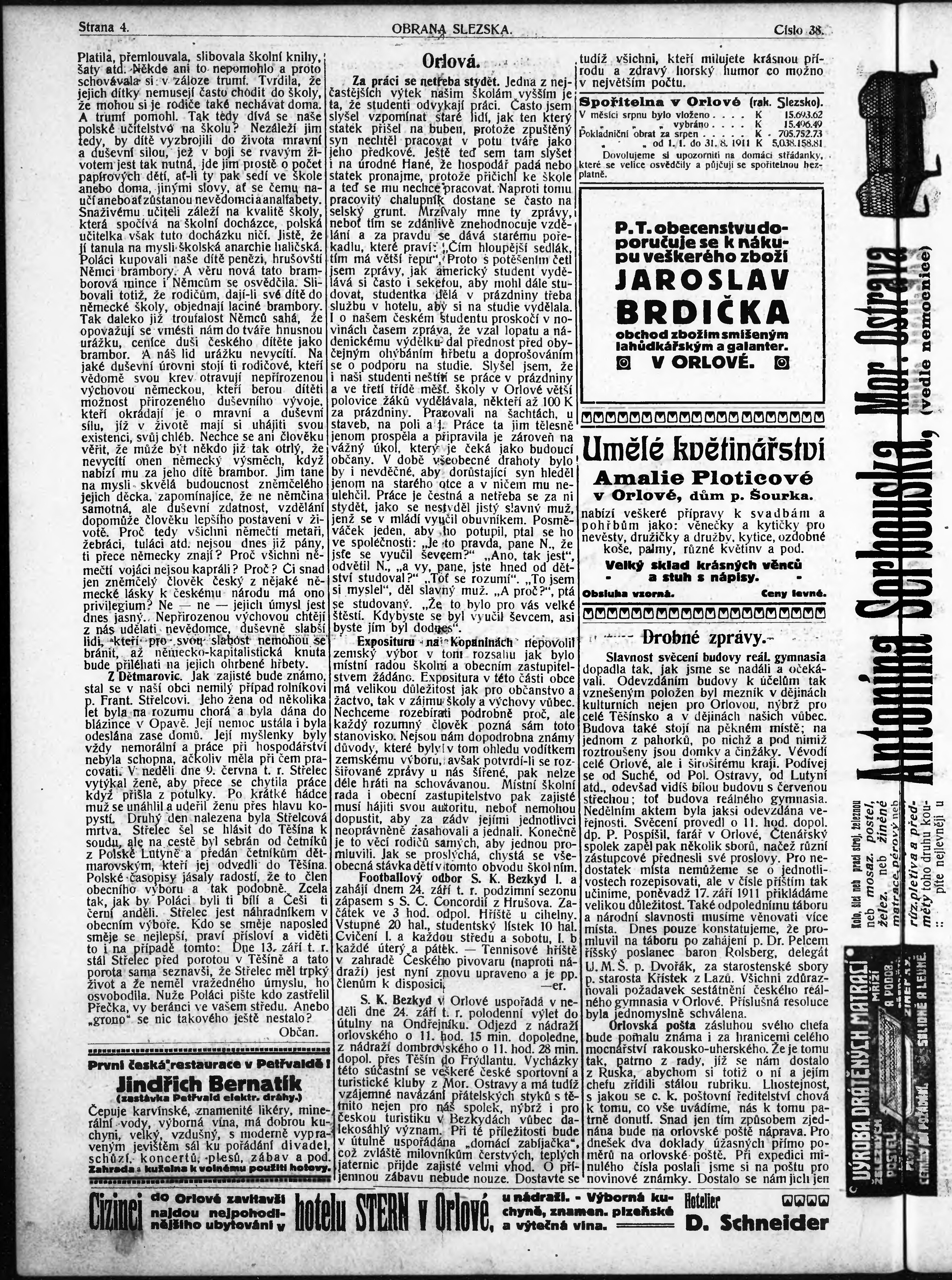 * Datum vydání výtisku: 22.9.1911 Číslo výtisku: 38
