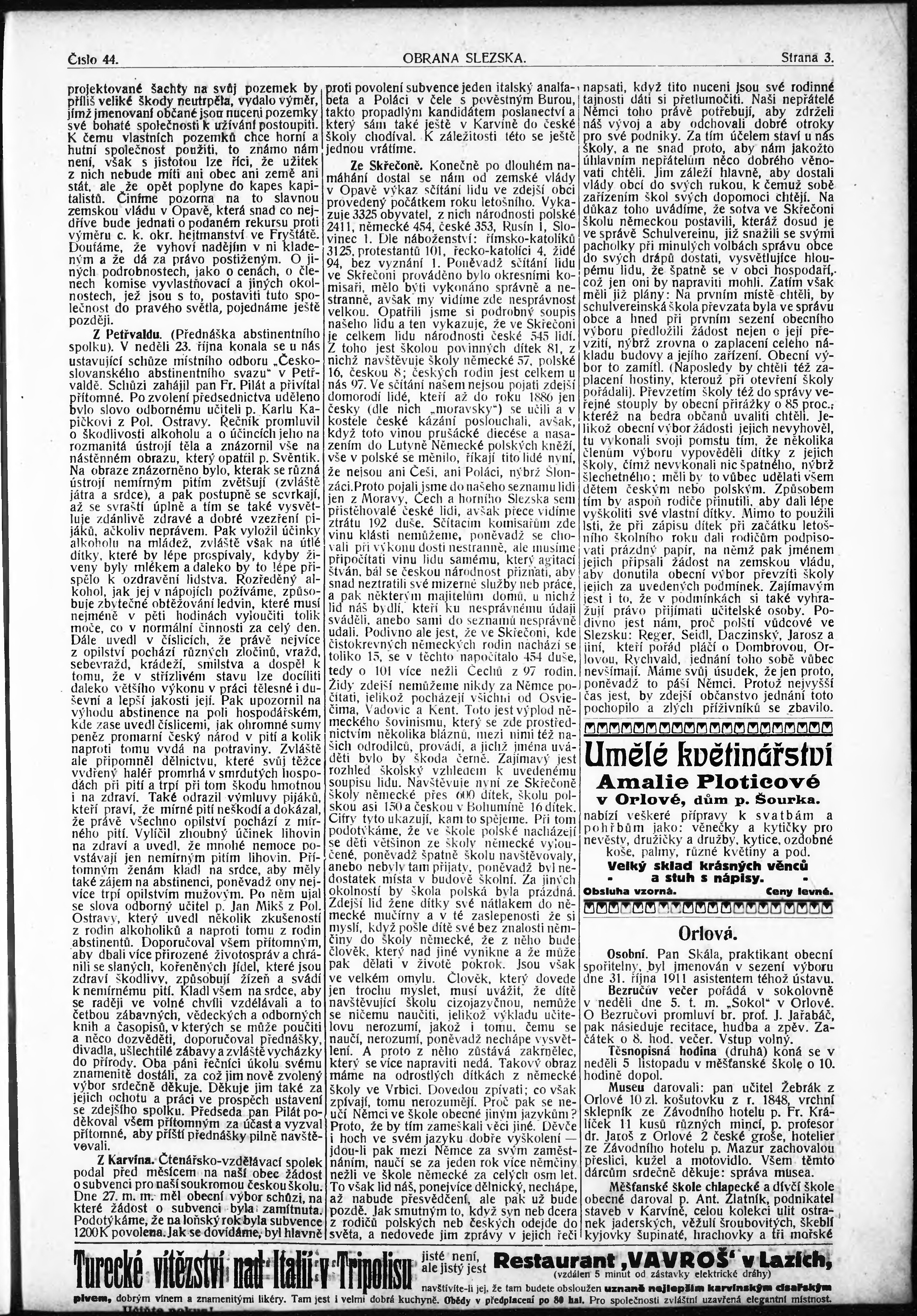 * Datum vydání výtisku: 3.11.1911 Číslo výtisku: 44