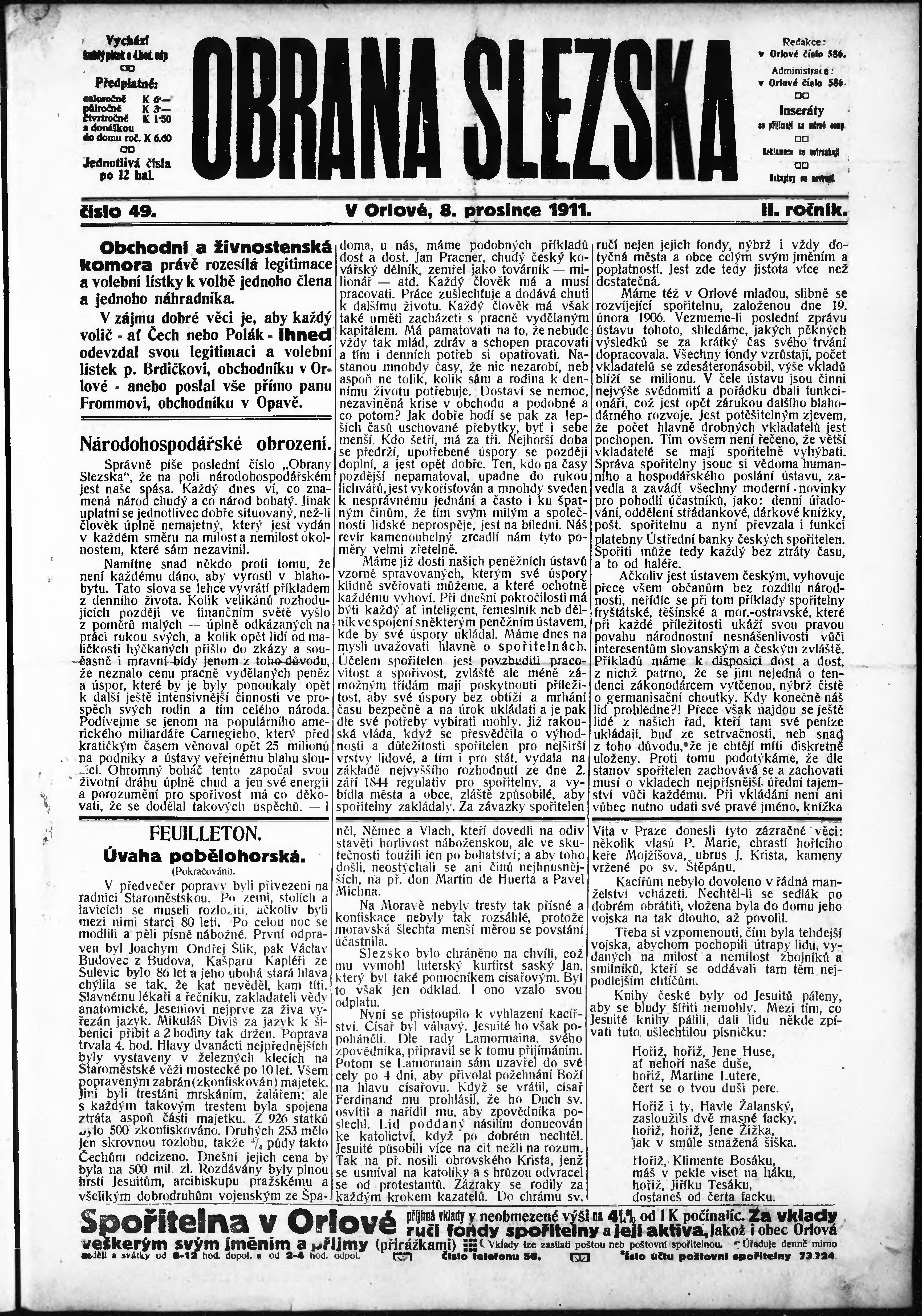 * Datum vydání výtisku: 8.12.1911 Číslo výtisku: 49