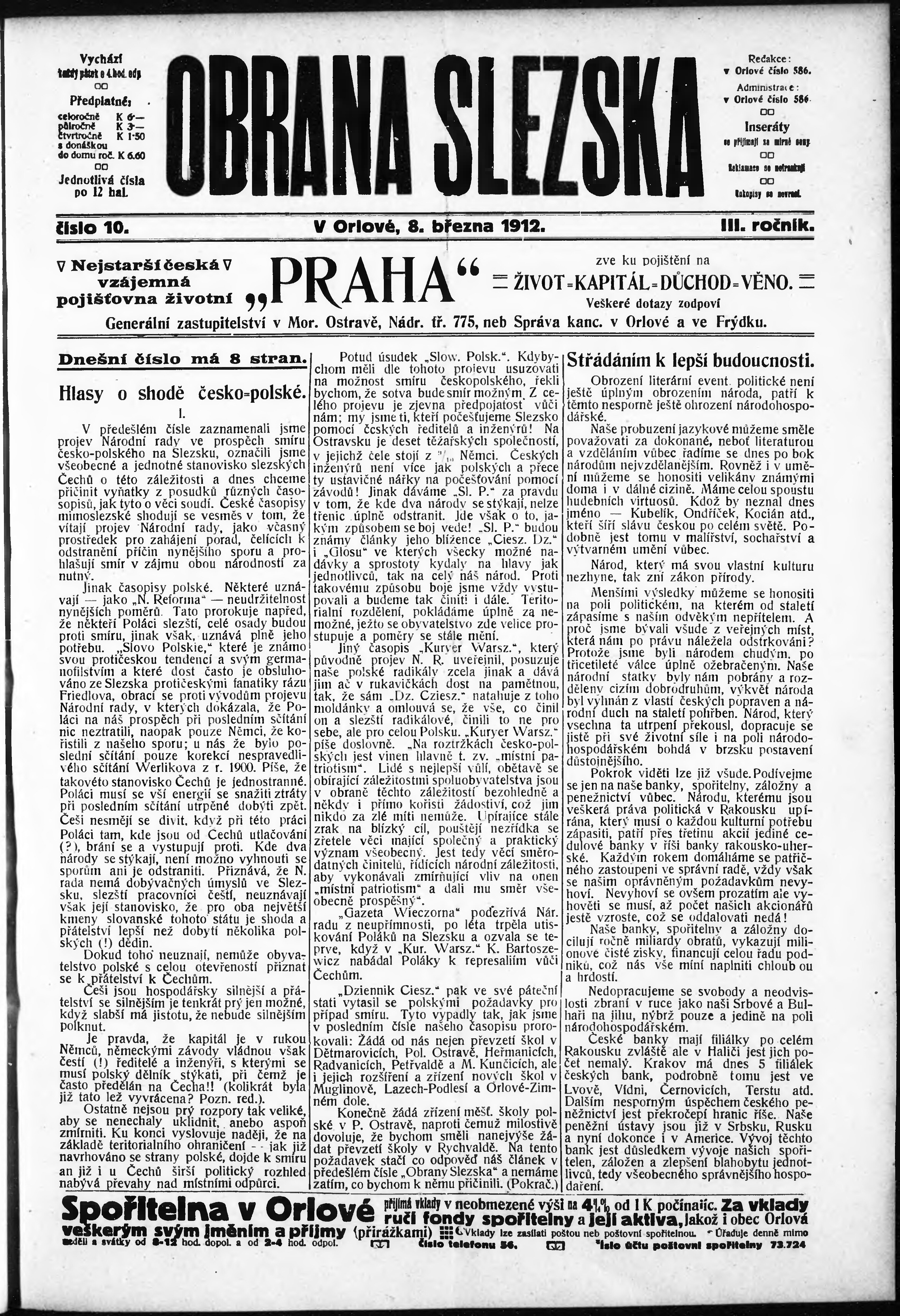 * Datum vydání výtisku: 8.3.1912 Číslo výtisku: 10