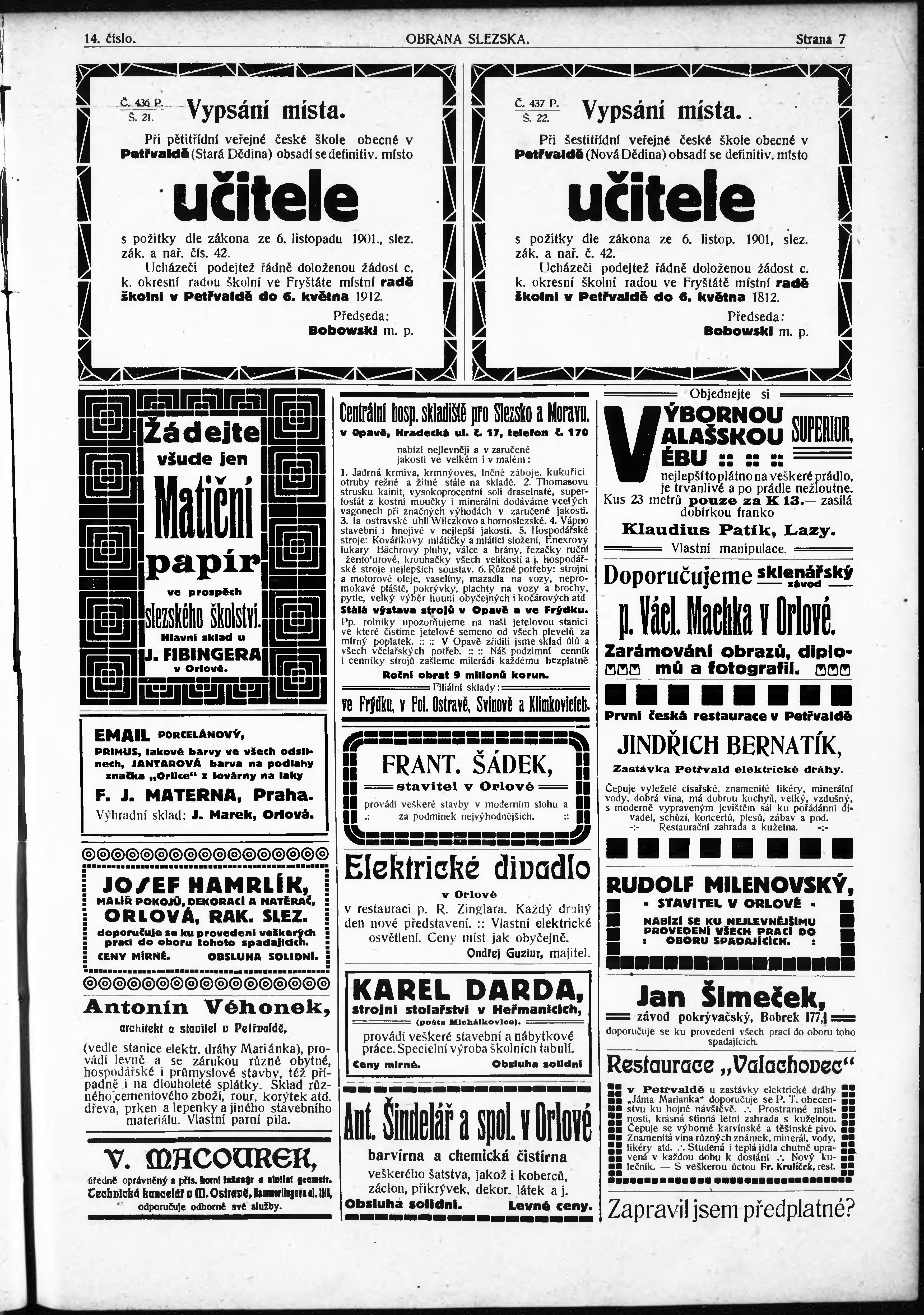 * Datum vydání výtisku: 5.4.1912 Číslo výtisku: 14