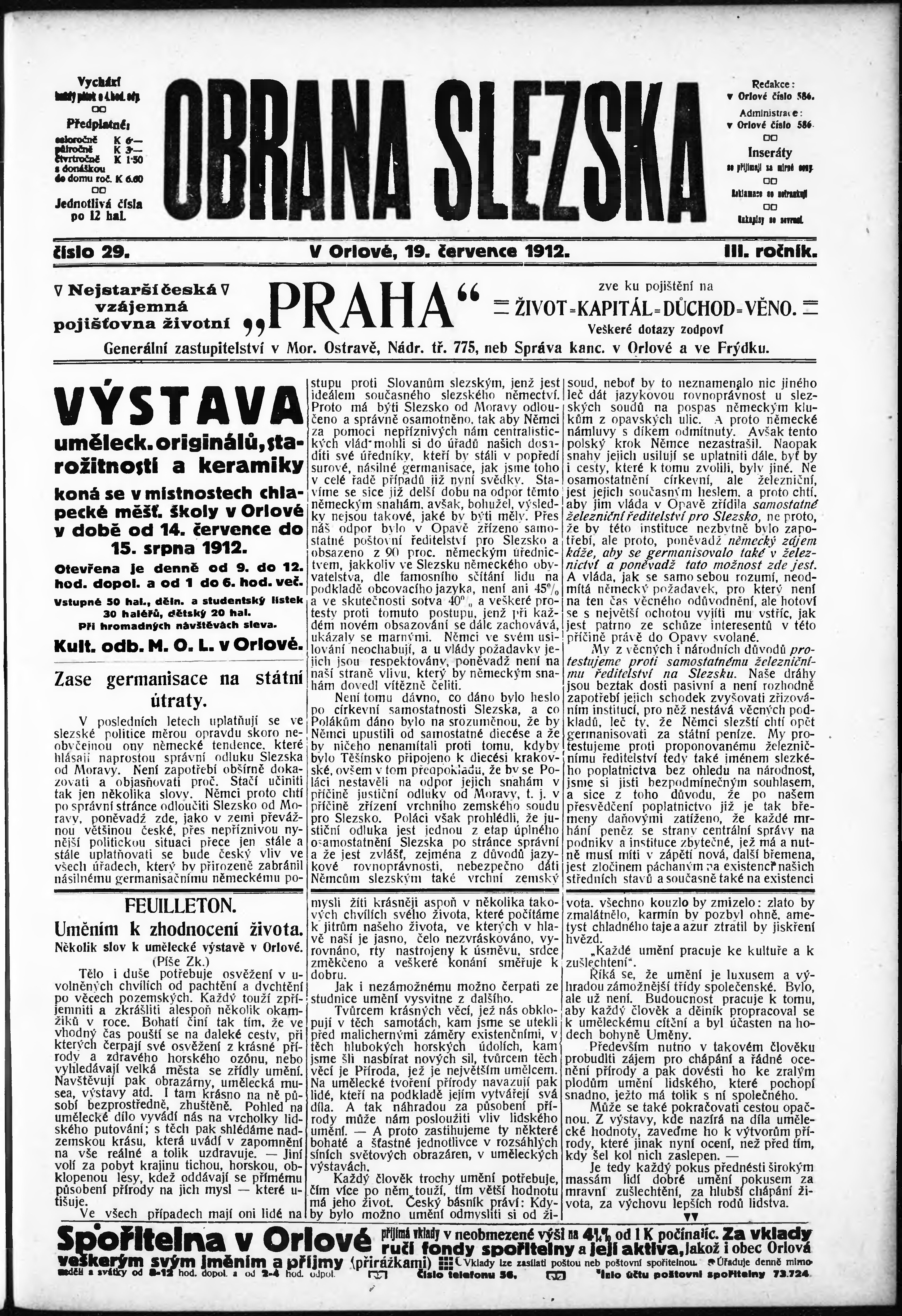 * Datum vydání výtisku: 19.7.1912 Číslo výtisku: 29
