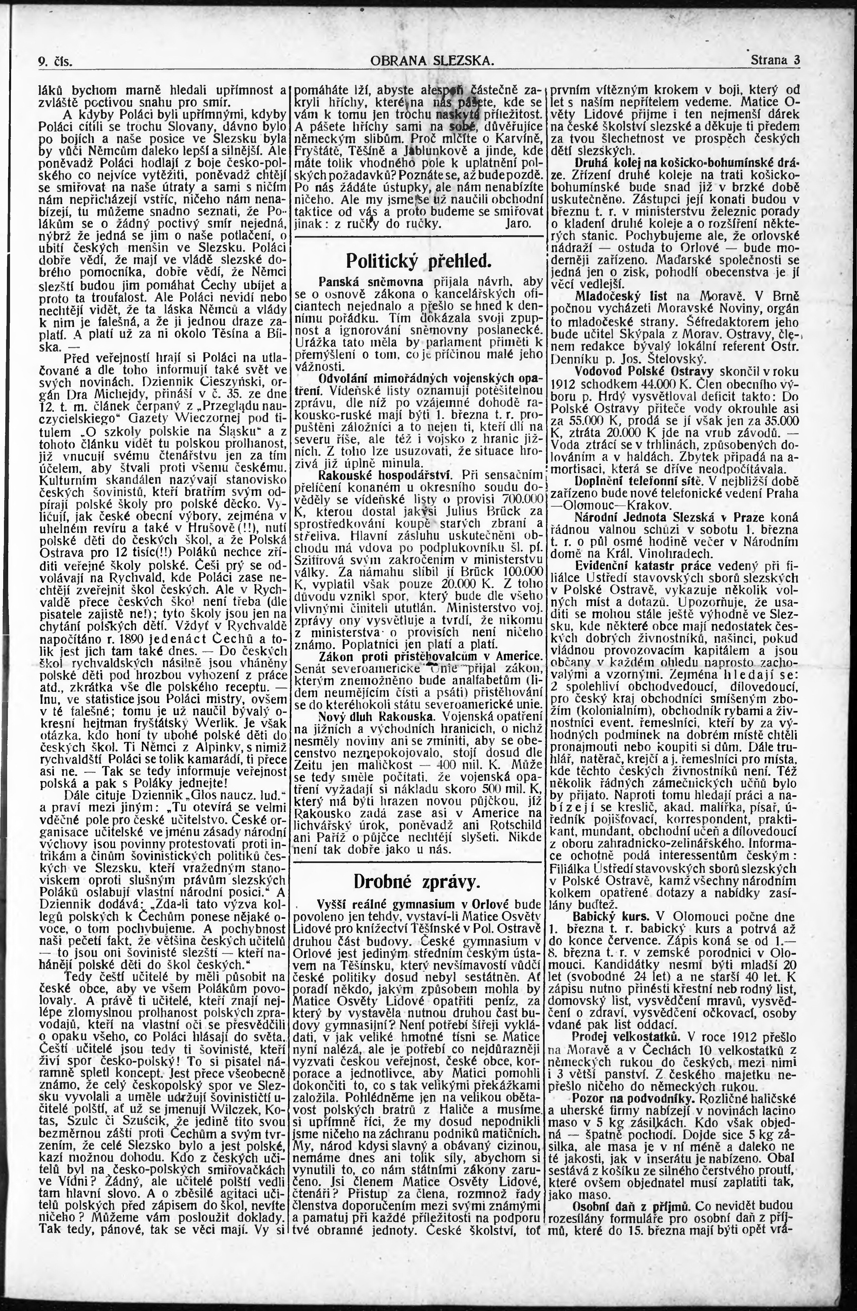 * Datum vydání výtisku: 28.2.1913 Číslo výtisku: 9