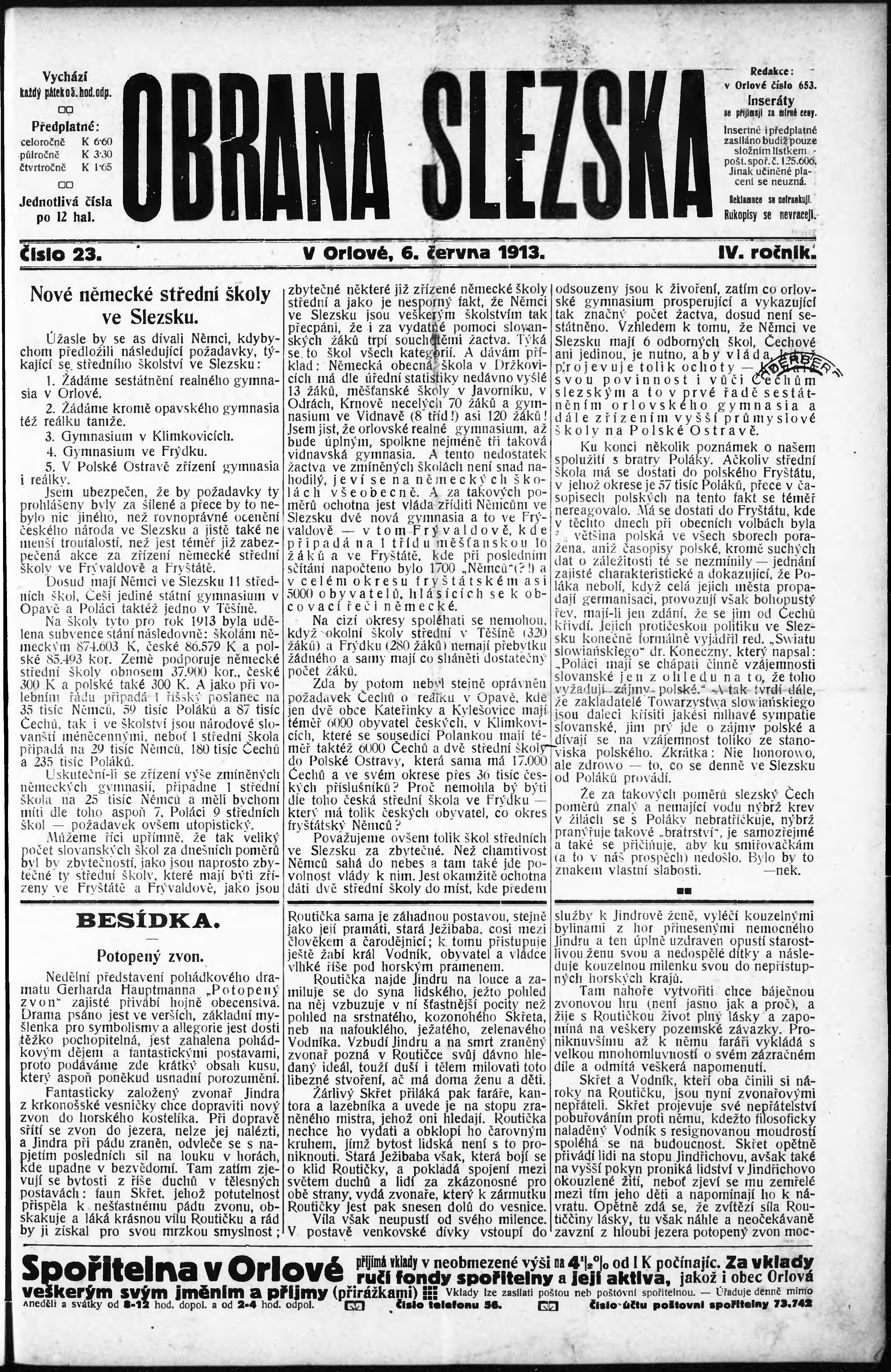 * Datum vydání výtisku: 6.6.1913 Číslo výtisku: 23