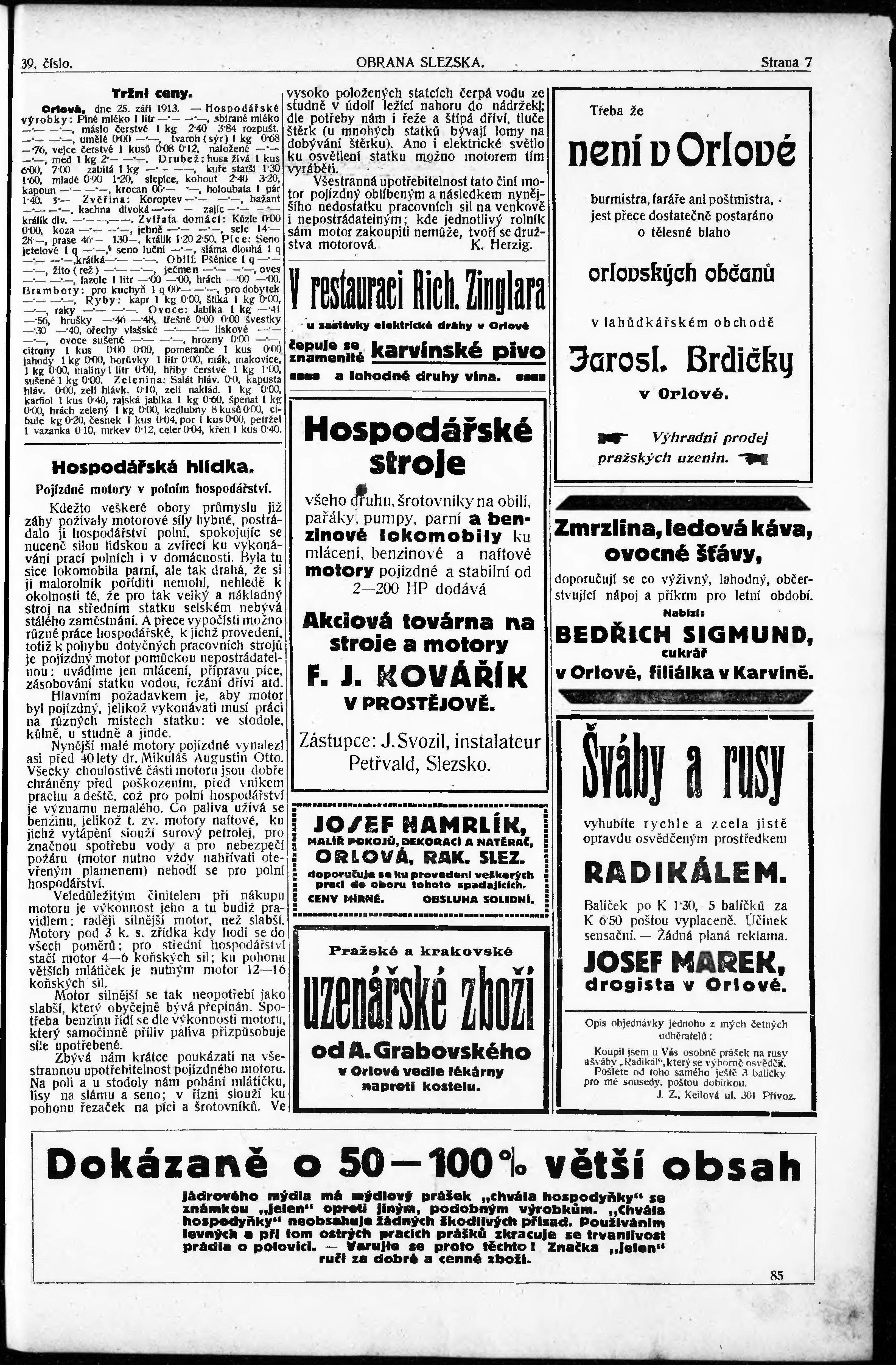 * Datum vydání výtisku: 26.9.1913 Číslo výtisku: 39