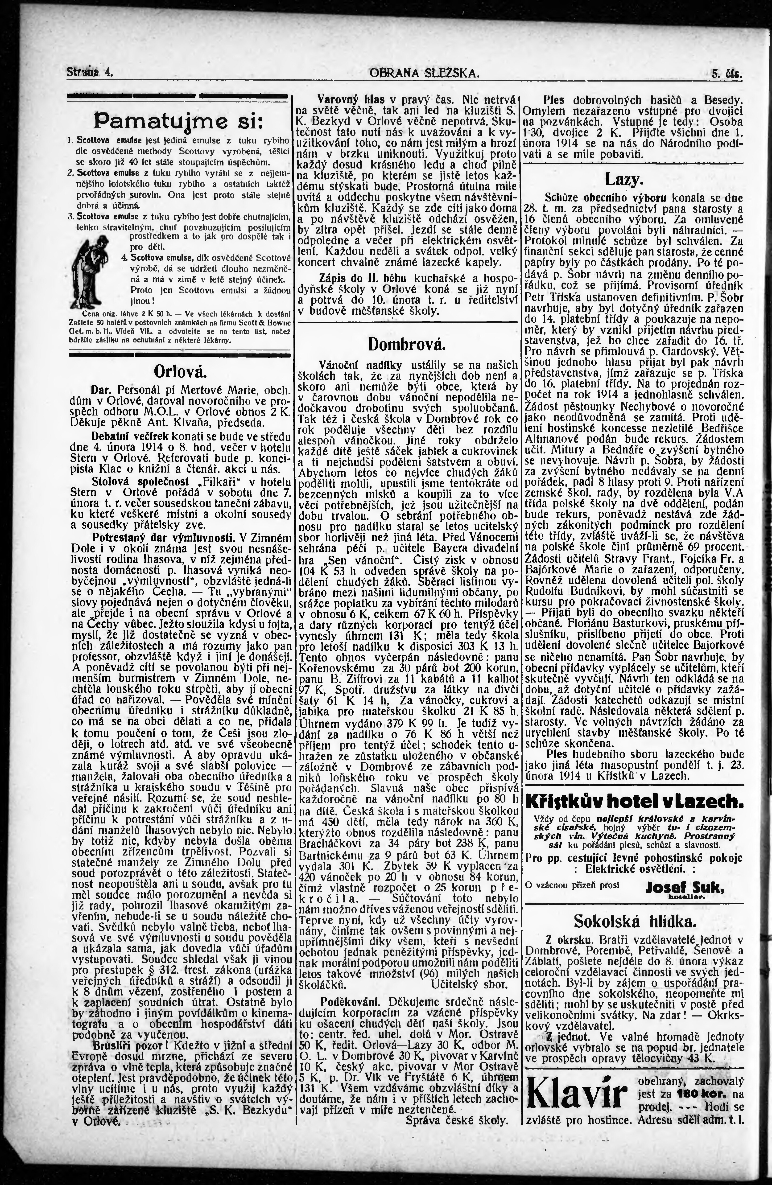 * Datum vydání výtisku: 30.1.1914 Číslo výtisku: 5