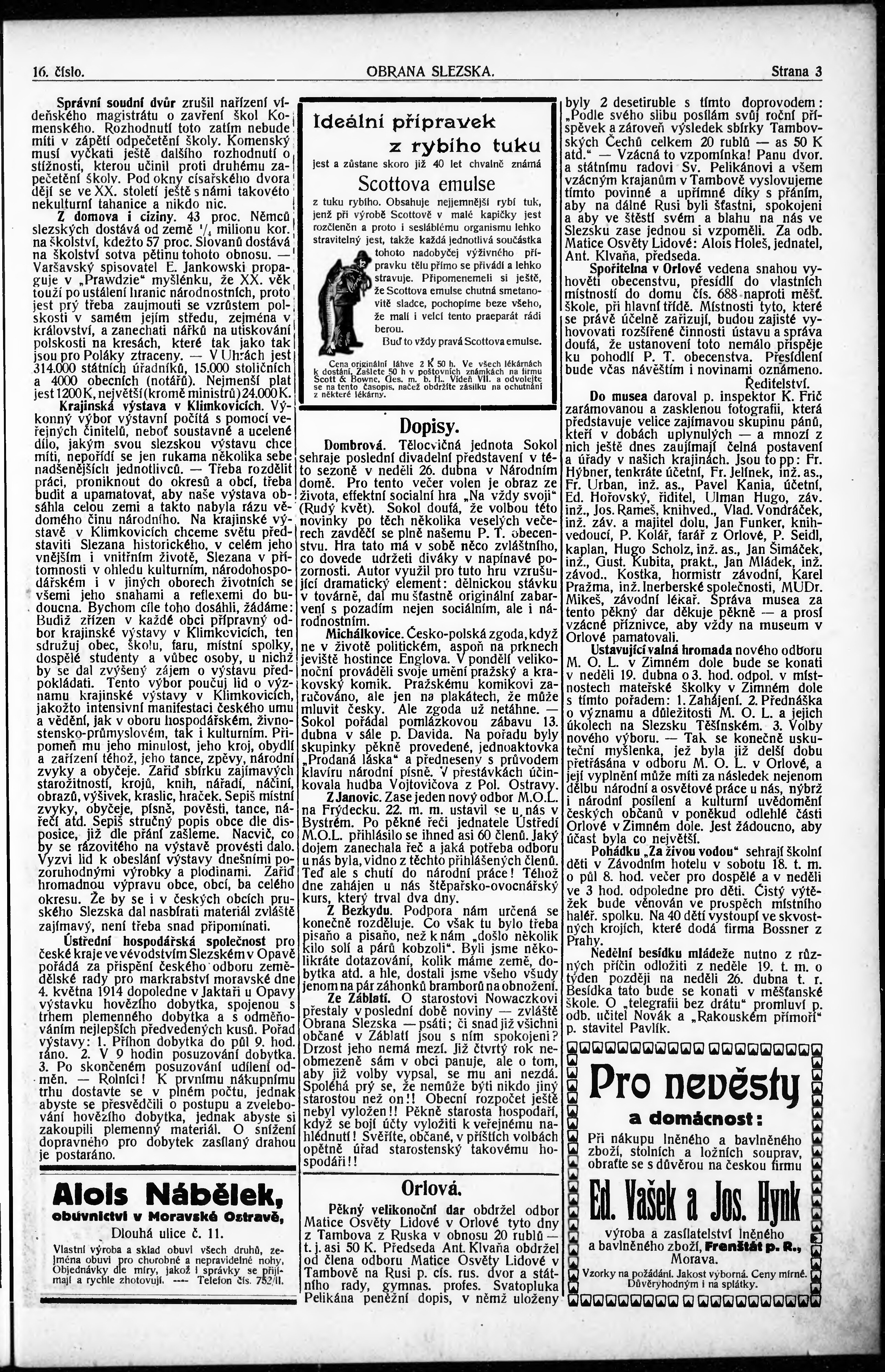 * Datum vydání výtisku: 17.4.1914 Číslo výtisku: 16