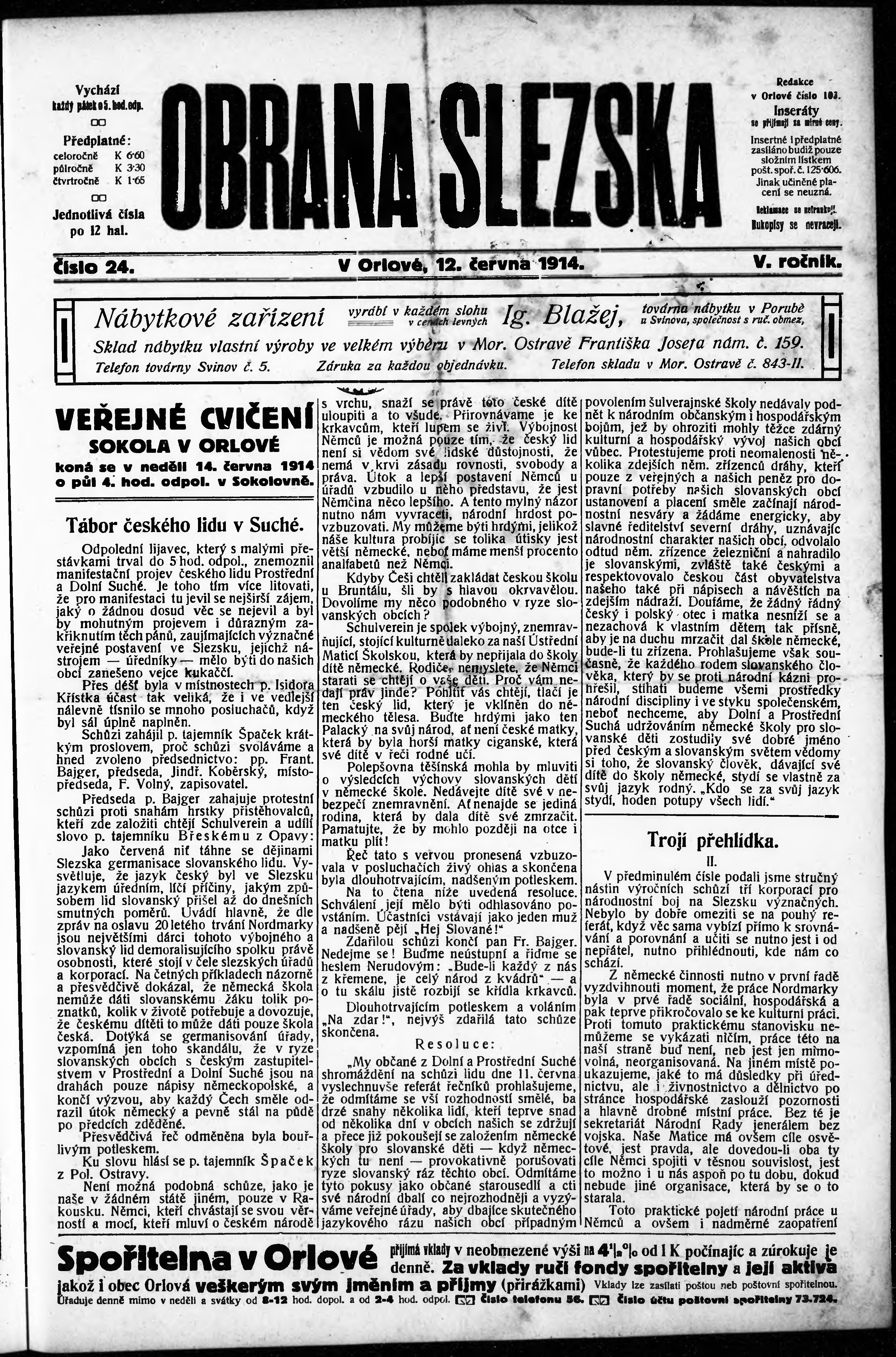 * Datum vydání výtisku: 12.6.1914 Číslo výtisku: 24