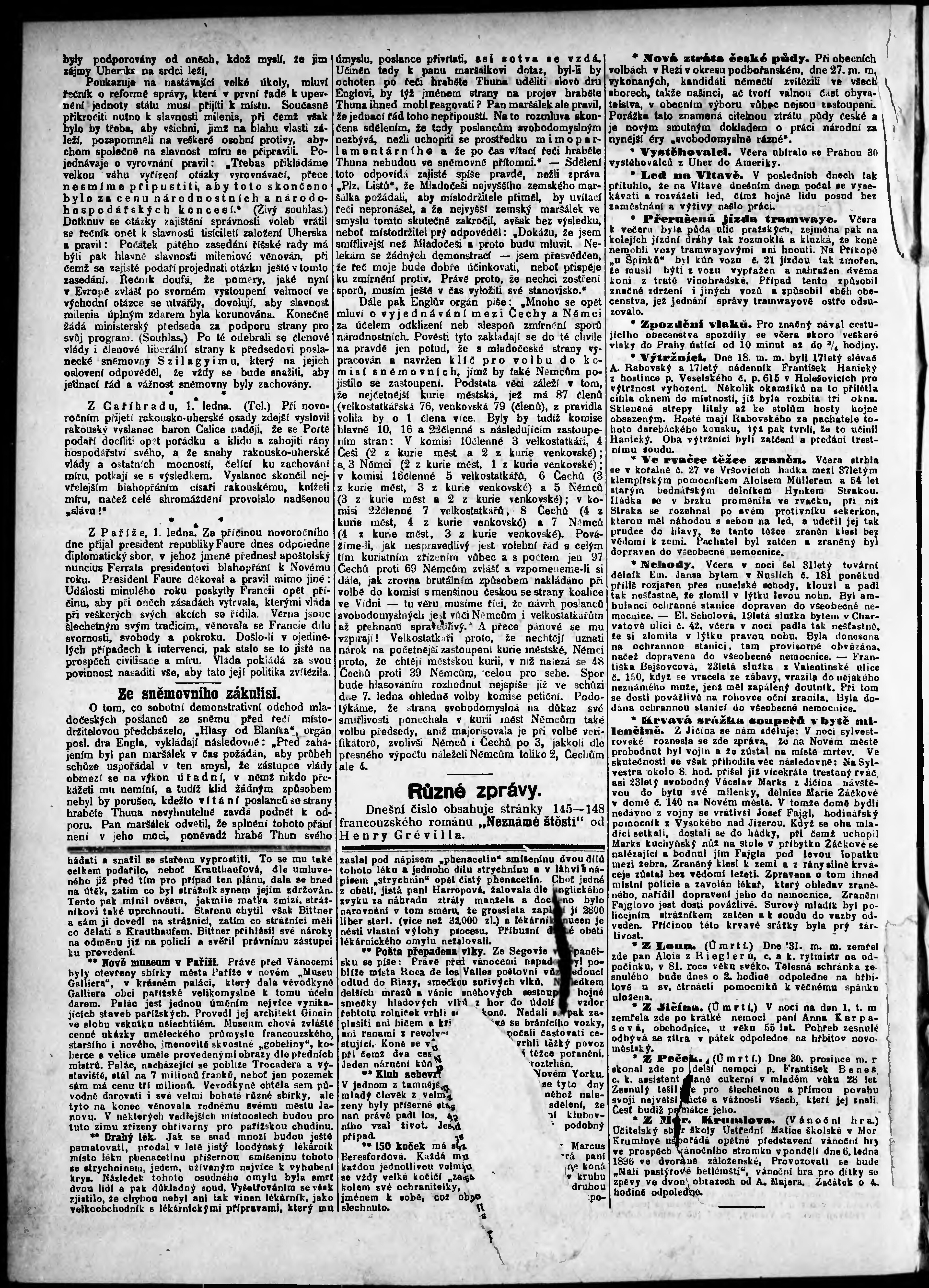 * Datum vydání výtisku: 2.1.1896 Číslo výtisku: 2 Poznámky k výtisku: odpolední vydání;